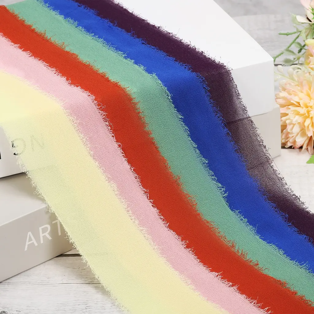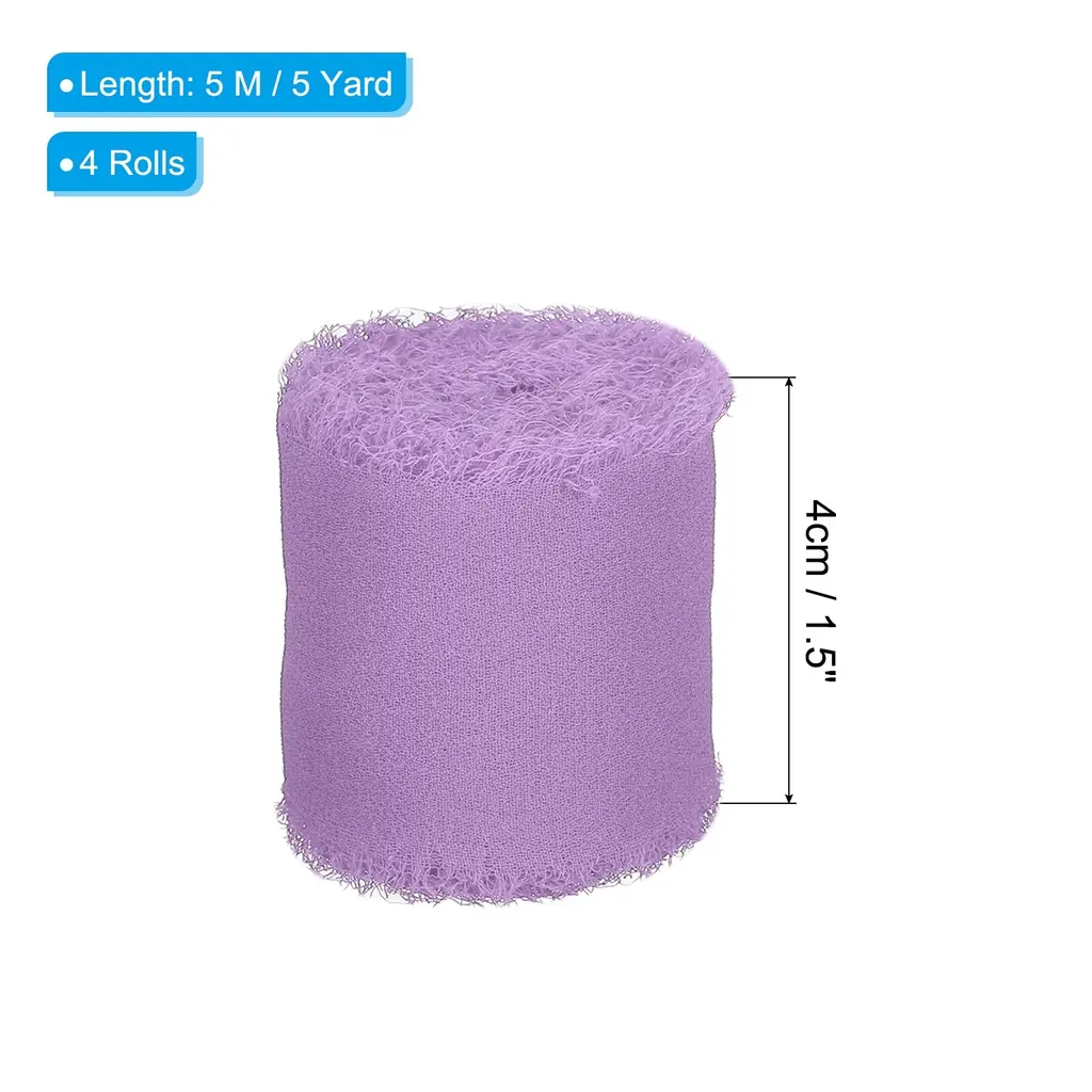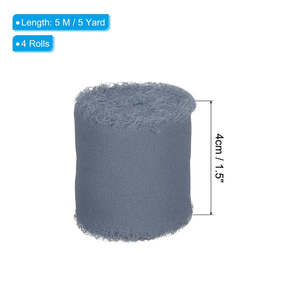 Chiffon ribbon is a versatile and stylish decorative accessory that is widely used to add an elegant touch to various items such as gift wrapping, bridal bouquets, wedding invitation decorations, and DIY craft projects.SpecificationColor: Grass GreenMaterial: ChiffonLength: 5 M / 5 YardWidth: 4cm / 1.5 inchPacking List: 4 Rolls x Fringe Silk RibbonAdvantageThe ribbon is made of durable chiffon material with frayed edges design. The silk ribbon has a smooth, soft and delicate texture, as well as vibrant color, making it the perfect elegant finishing touch for your decoration projects.InstructionEasy to use, you can wrap the ribbon around gifts and tie it into a bow, or wrap it around the stems of a bouquet.NOTE: Due to the difference in natural light and display resolution, the item color displayed in photos may be slightly different from the real object.