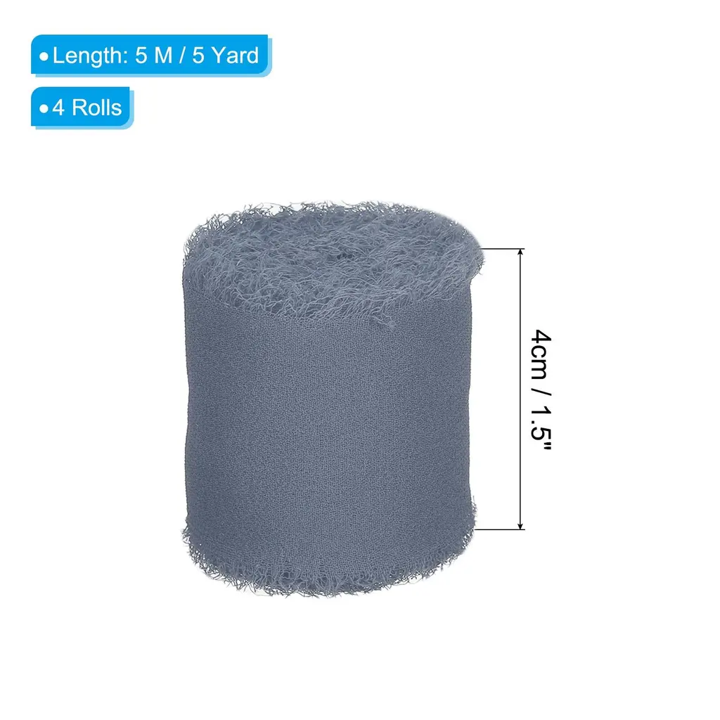 4 Rolls 1.5 Inch X 5 Yard Handmade Fringe Silk Chiffon Ribbon - Grey Blue