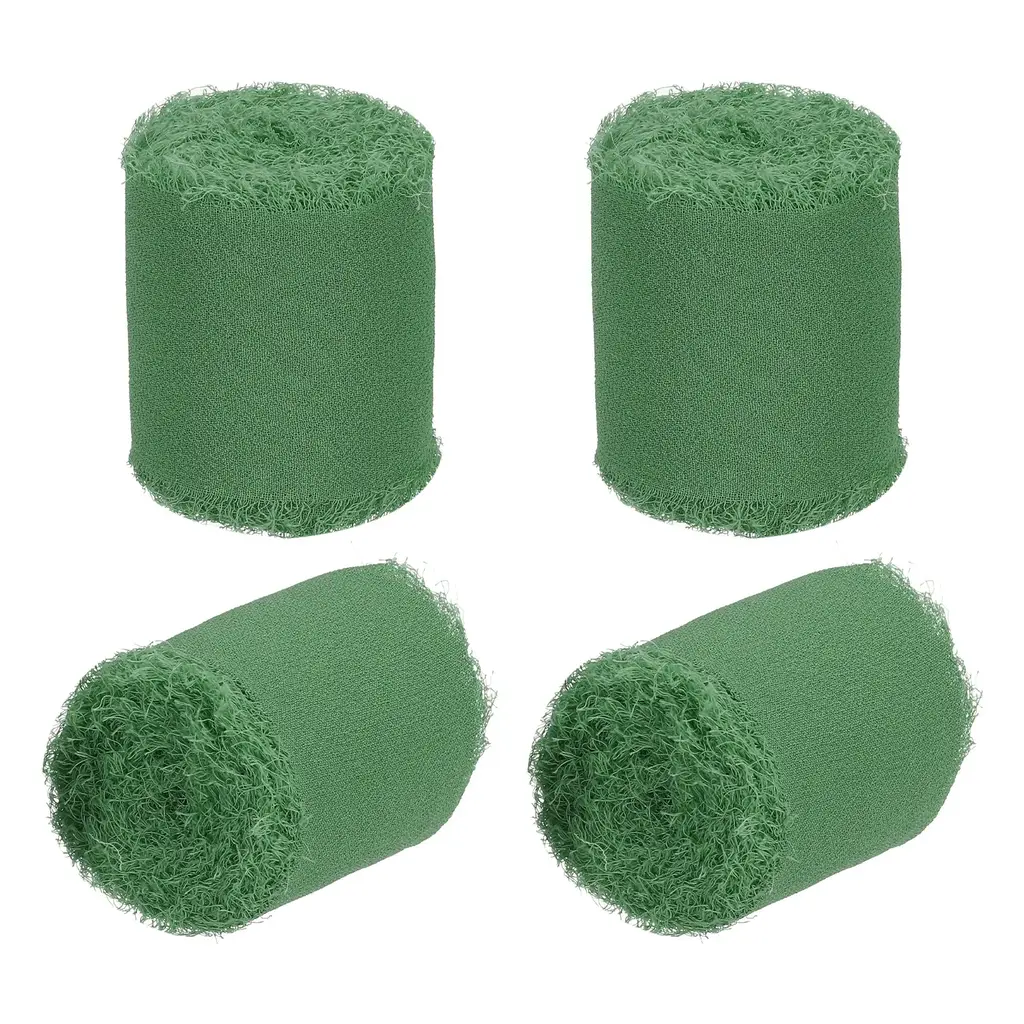 Chiffon ribbon is a versatile and stylish decorative accessory that is widely used to add an elegant touch to various items such as gift wrapping, bridal bouquets, wedding invitation decorations, and DIY craft projects.SpecificationColor: Grass GreenMaterial: ChiffonLength: 5 M / 5 YardWidth: 4cm / 1.5 inchPacking List: 4 Rolls x Fringe Silk RibbonAdvantageThe ribbon is made of durable chiffon material with frayed edges design. The silk ribbon has a smooth, soft and delicate texture, as well as vibrant color, making it the perfect elegant finishing touch for your decoration projects.InstructionEasy to use, you can wrap the ribbon around gifts and tie it into a bow, or wrap it around the stems of a bouquet.NOTE: Due to the difference in natural light and display resolution, the item color displayed in photos may be slightly different from the real object.