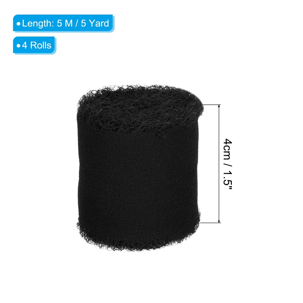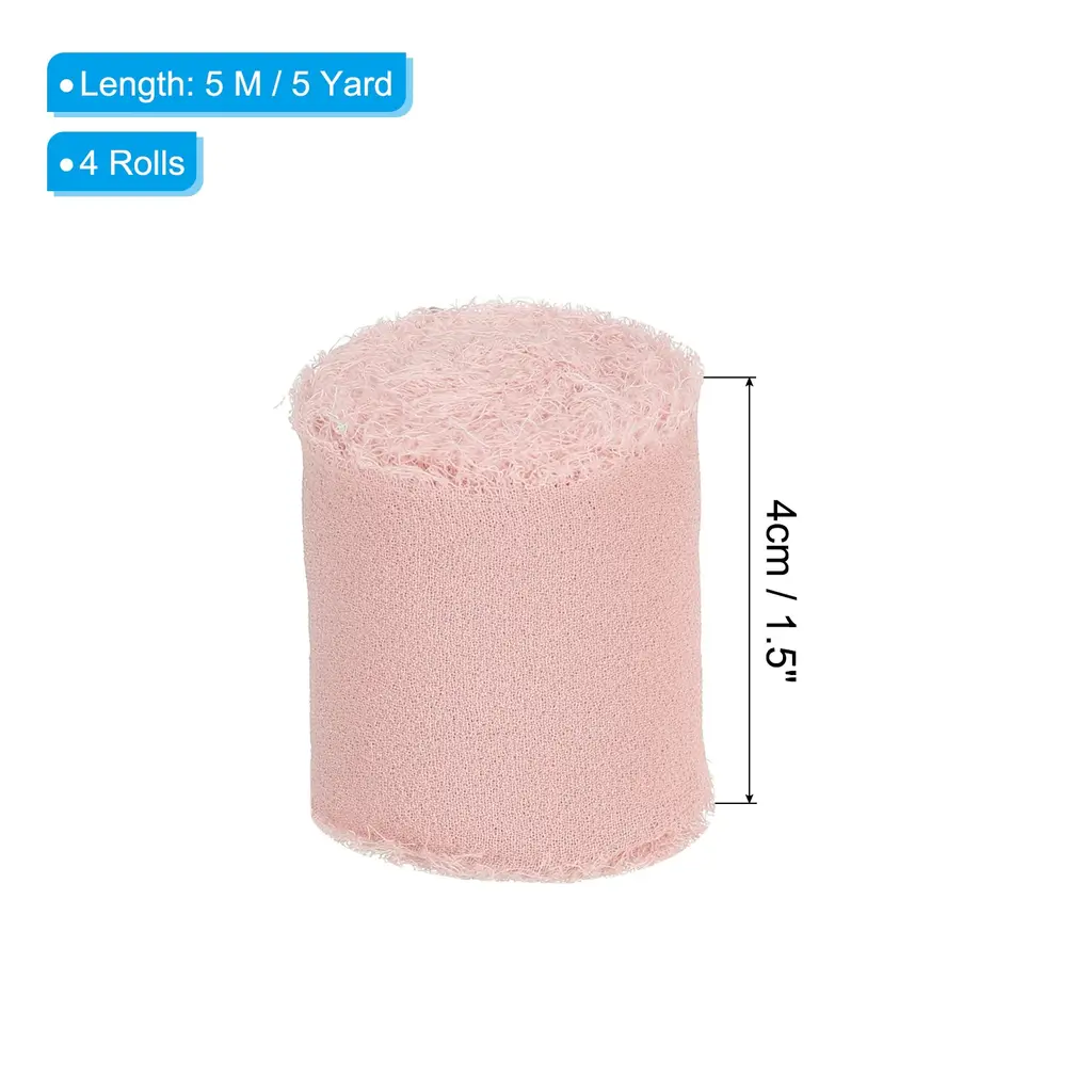 Chiffon ribbon is a versatile and stylish decorative accessory that is widely used to add an elegant touch to various items such as gift wrapping, bridal bouquets, wedding invitation decorations, and DIY craft projects.SpecificationColor: Grass GreenMaterial: ChiffonLength: 5 M / 5 YardWidth: 4cm / 1.5 inchPacking List: 4 Rolls x Fringe Silk RibbonAdvantageThe ribbon is made of durable chiffon material with frayed edges design. The silk ribbon has a smooth, soft and delicate texture, as well as vibrant color, making it the perfect elegant finishing touch for your decoration projects.InstructionEasy to use, you can wrap the ribbon around gifts and tie it into a bow, or wrap it around the stems of a bouquet.NOTE: Due to the difference in natural light and display resolution, the item color displayed in photos may be slightly different from the real object.