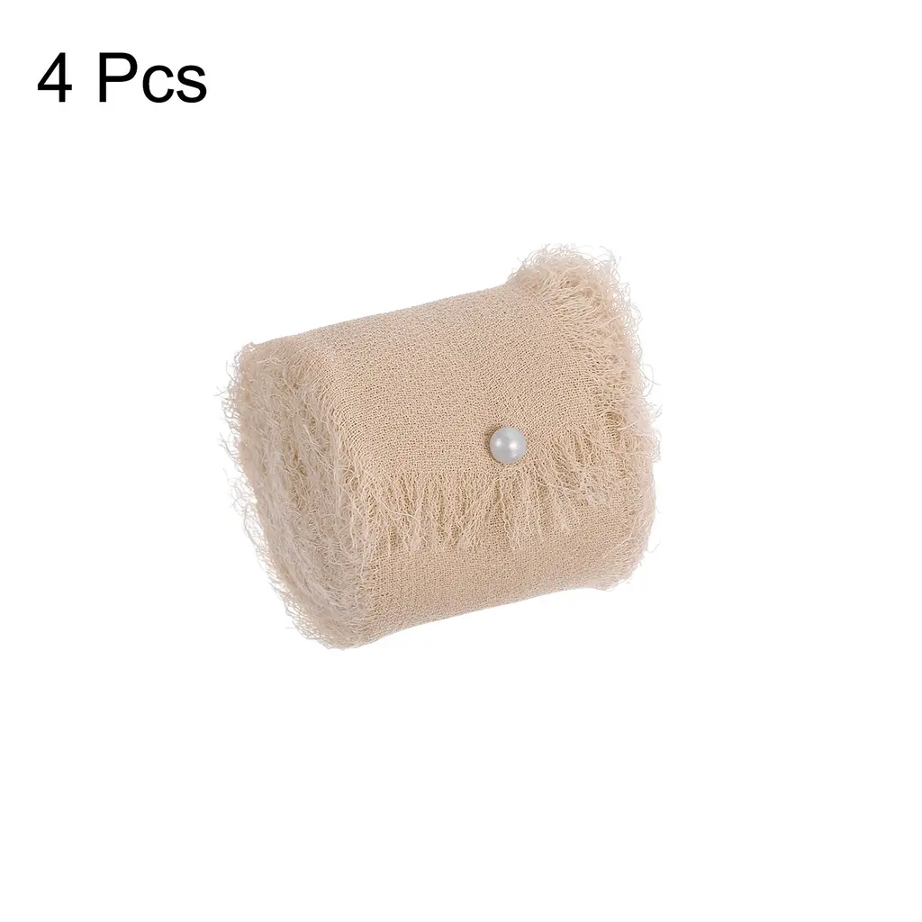 4 Rolls 1"x5.5yd Chiffon Ribbon Handmade Fringe Chiffon Silk Ribbon - Gray