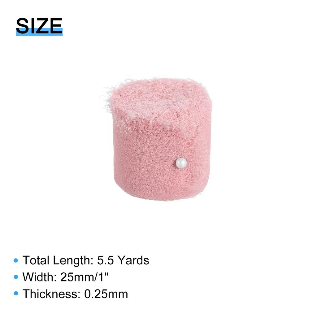 4 Rolls 1"x5.5yd Chiffon Ribbon Handmade Fringe Chiffon Silk Ribbon - Light Pink