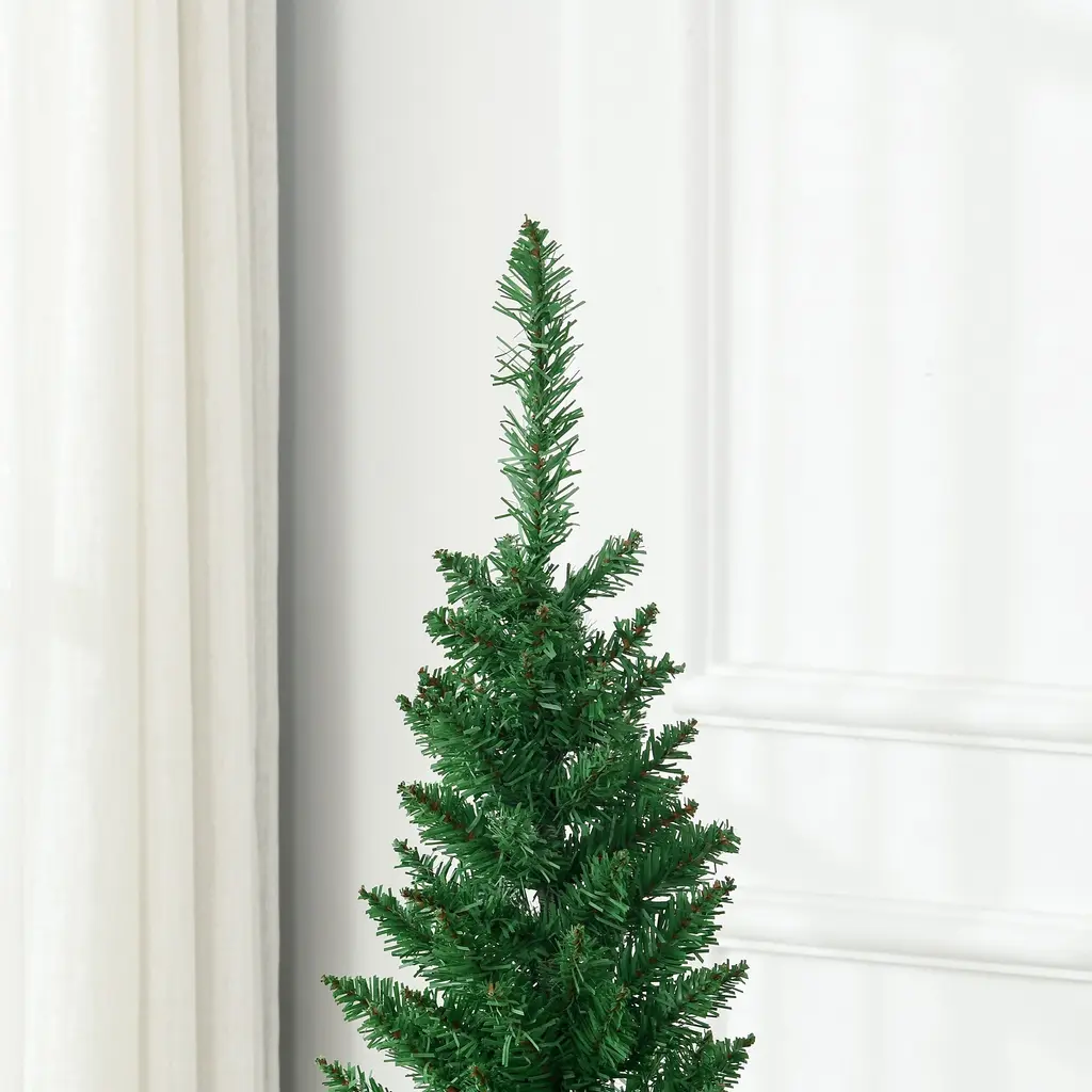 Whether in a house or an apartment your home will be filled with rustic charm with this adorable tree. It features a slim profile with snow-covered branches spread out and reaching out. The tree is nestled in a burlap base allowing you to place it anywhere including you want to give that rustic flair. Product Features: Artificial flocked Christmas tree. Unlit. Slim profile tree. Easy 2 piece assembly. Tree cannot be removed from the rustic burlap base. Dimensions: 4' high (from the base of the stand to the top of the tree). 6" base diameter (at the widest point). Material(s): PVC/metal/burlap. Note: Branches are compressed for shipment and need to be fluffed out upon arrival to look like the photo.