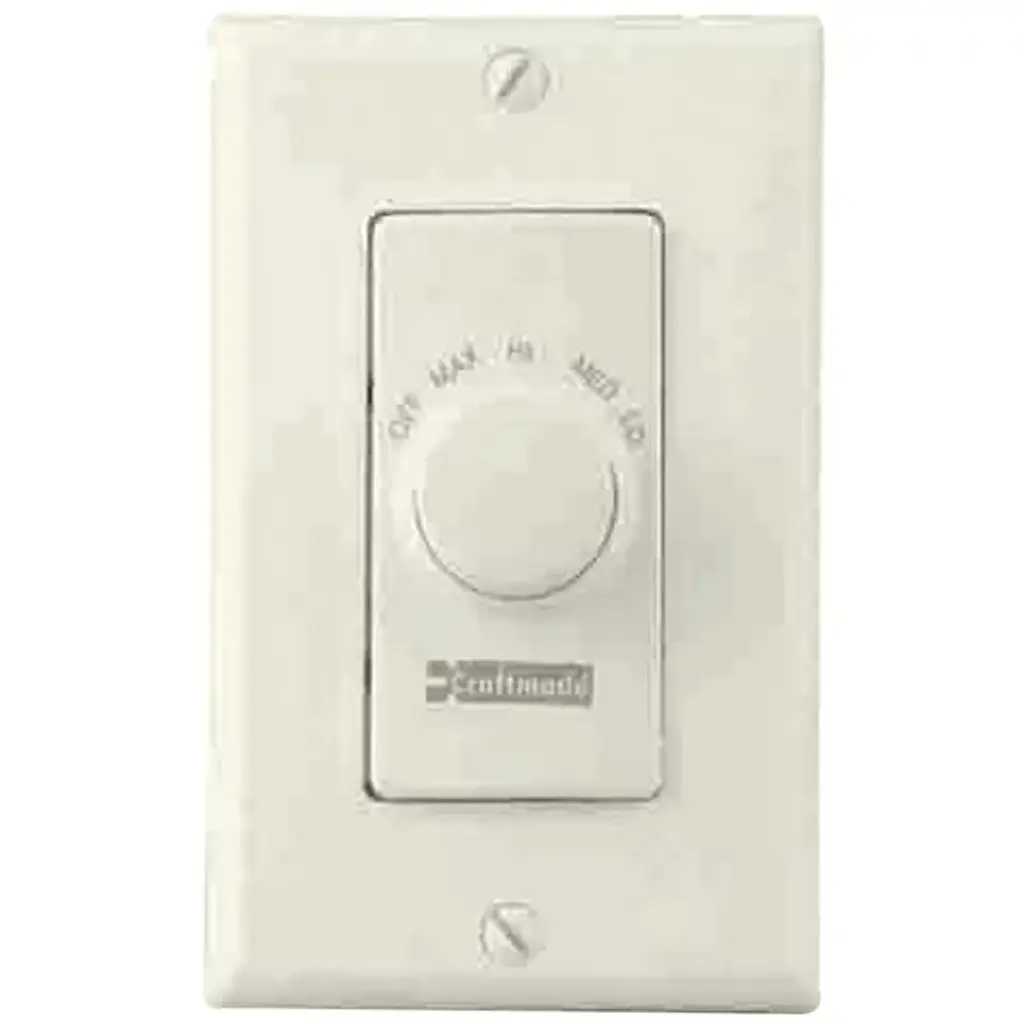 The Craftmade 4 Speed Fan Wall Control provides convenient control of your Craftmade ceiling fan via rotary knob. Has 4 different speed settings not including off position. Replaces current in-wall switch for standard 2-wire installation.