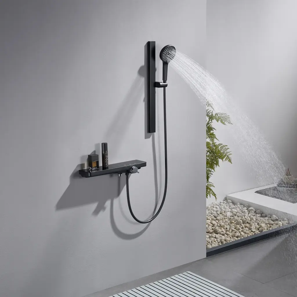 Elevate your showering experience with this high-pressure shower system. With a fashionable handheld showerhead that has four spray modes—Rain, Massage, Waterfall, and Adjustable—it provides a refreshing and customized clean. Easy height adjustment is facilitated by the slide bar, which suits all users. Constructed with robust ABS, glass, and ceramic valve, this modern shower system is designed for performance and durability. Easy installation and provided parts make it a hassle-free upgrade to any bathroom.