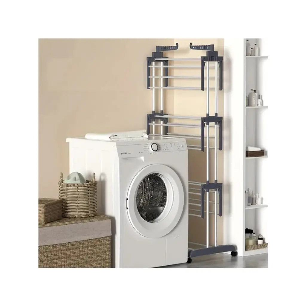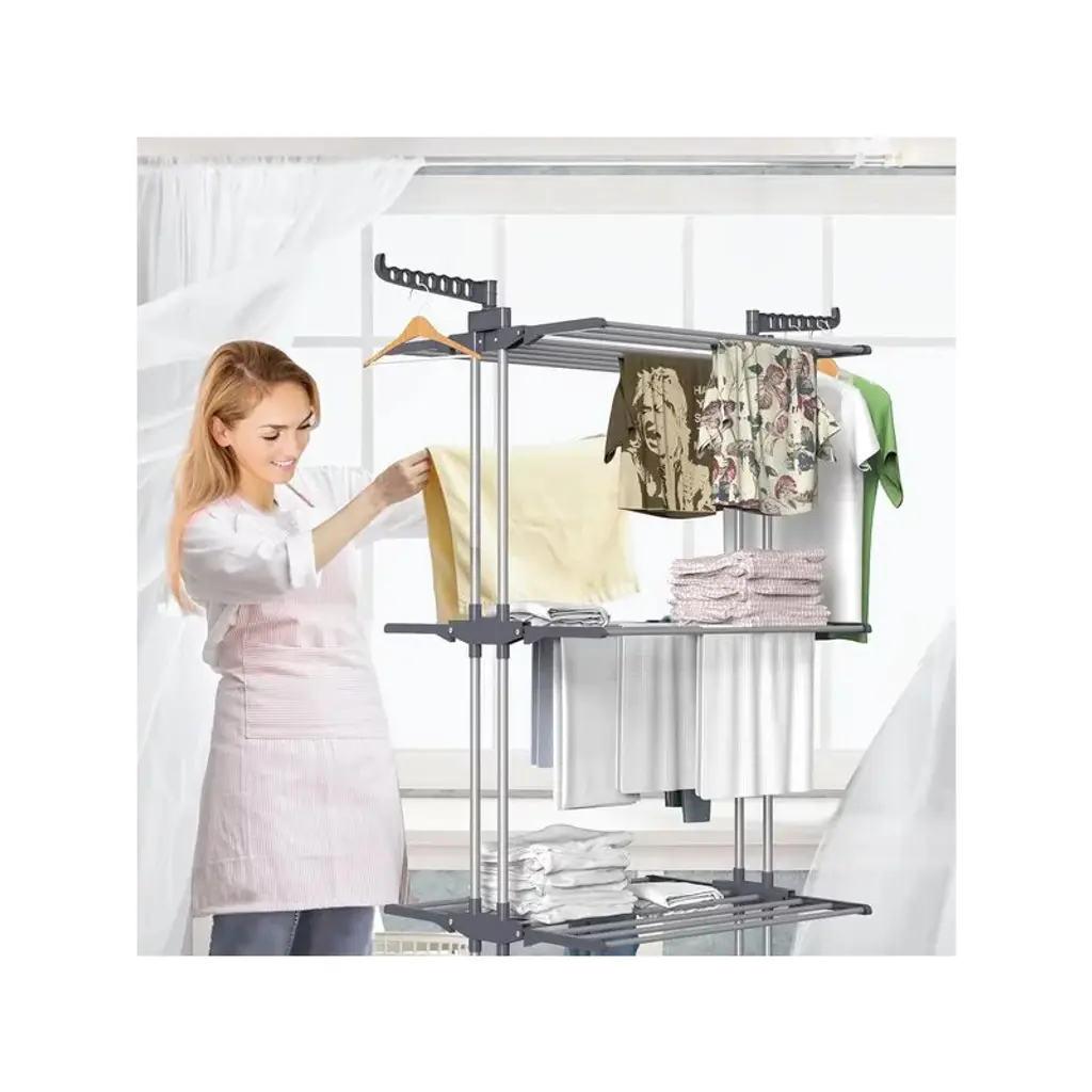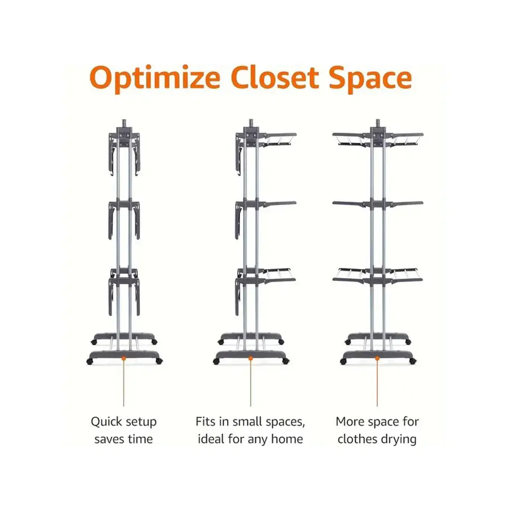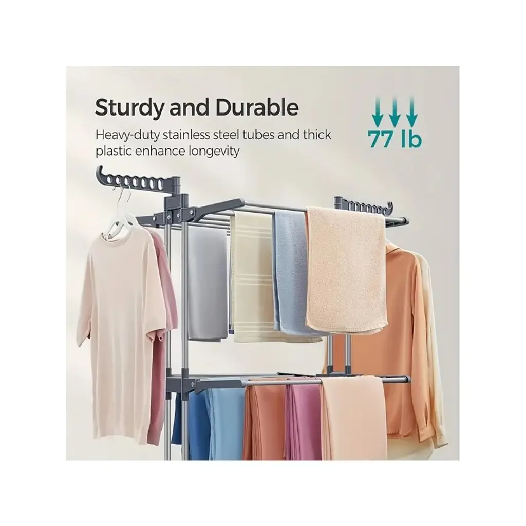 4-Tier Clothes Drying Rack, 67.7-inch Laundry Drying Rack with Foldable Base, 4-Tier Stainless Steel Drying Rack, Movable Laundry Rack for Indoor and Outdoor Use - Gray