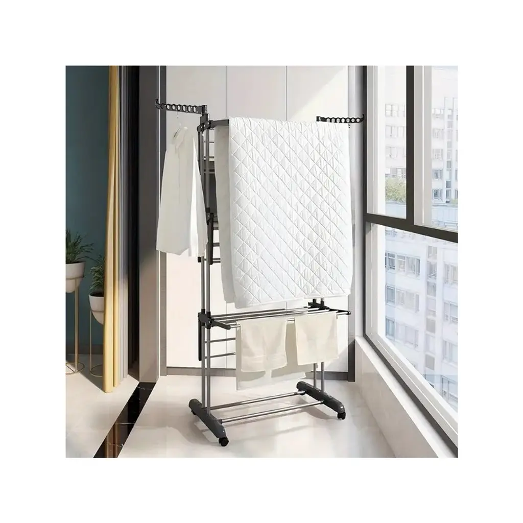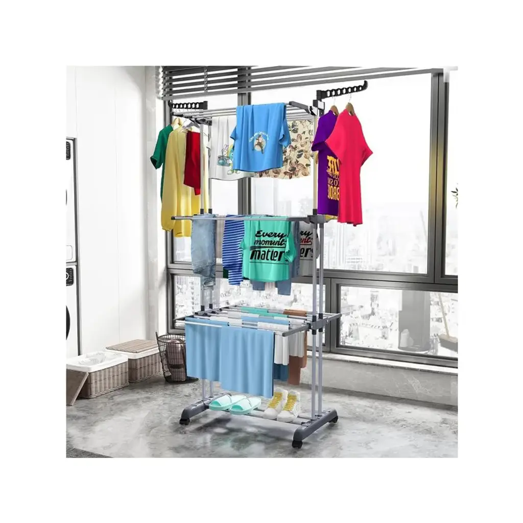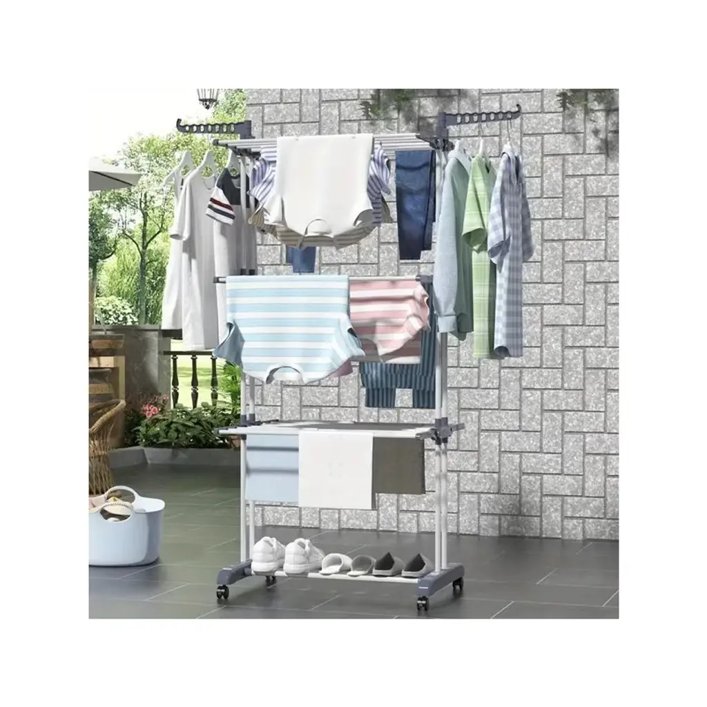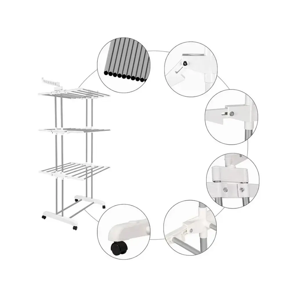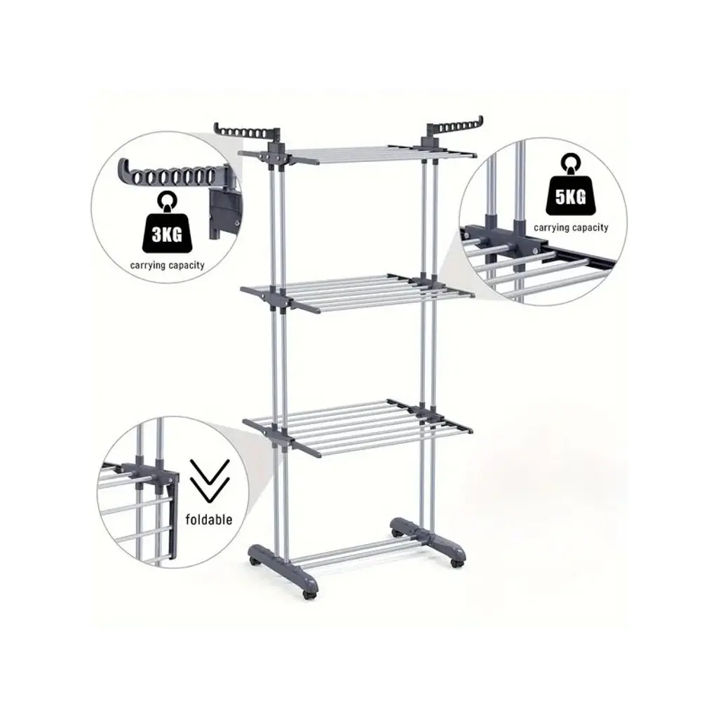 4-tier Clothes Drying Rack, 67.7-inch Laundry Drying Rack With Foldable Base, 4-tier Stainless Steel Drying Rack, Movable Laundry Rack