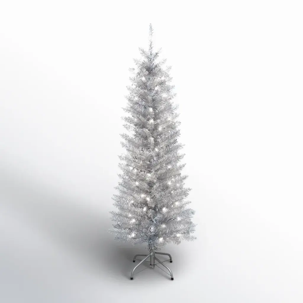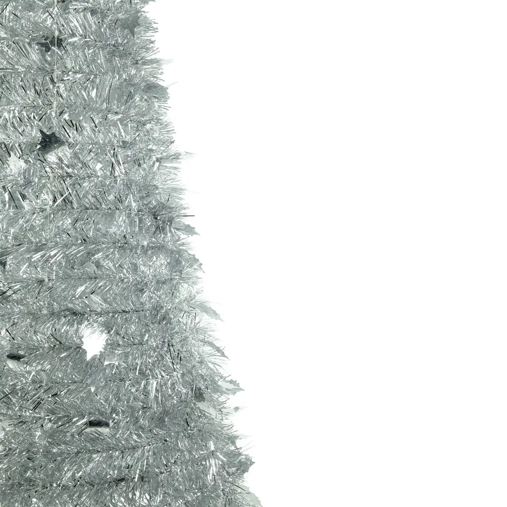 Are you sick of the long drawn-out process of setting up your Christmas tree piecing sections together fluffing the branches then having to tirelessly decorate it to your desire? If so this is the perfect tree for you! This "pop-up" tree's collapsible design allows it to be set up in mere seconds and makes set up a breeze. It can be collapsed just as easily and stored away for next year when the season is over. Perfect for apartments dorm rooms or families who want to relax and enjoy the holiday without the hassle. Product Features: Tinsel pop-up artificial Christmas tree White inner pole Easy pop-up assembly Comes with a plastic tree stand Dimensions: 4' high (from the base of the stand to the top of the tree) 16" base diameter Material(s): tinsel/metal/plastic