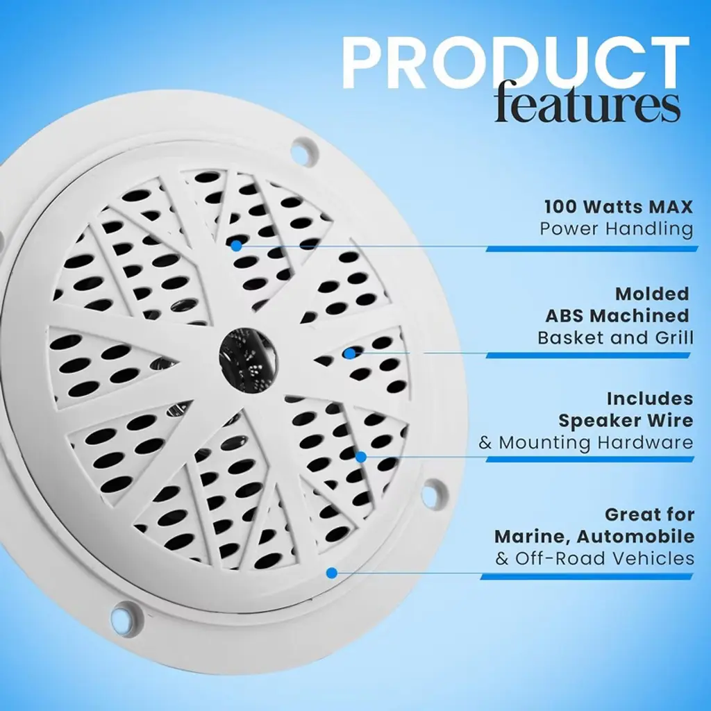 4" Waterproof Marine Stereo Speakers For Outdoor Use With Dual-cone Design, Full-range Sound, White, Pair