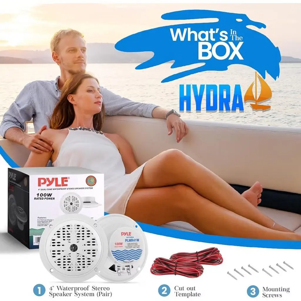 The Pyle PLMR41W Waterproof Marine Stereo Speakers are engineered to deliver outstanding sound quality in marine and outdoor settings. Featuring a 4" dual-cone full-range design, these speakers provide clear, dynamic audio that enhances any listening experience. The waterproof construction and weather-resistant materials make these speakers perfect for boats, pool areas, and other outdoor locations. The molded ABS plastic basket and polypropylene cone ensure durability and protection against the elements, while the sleek white design blends seamlessly into any environment. With the PLMR41W speakers, you can enjoy your favorite music wherever your adventures take you.