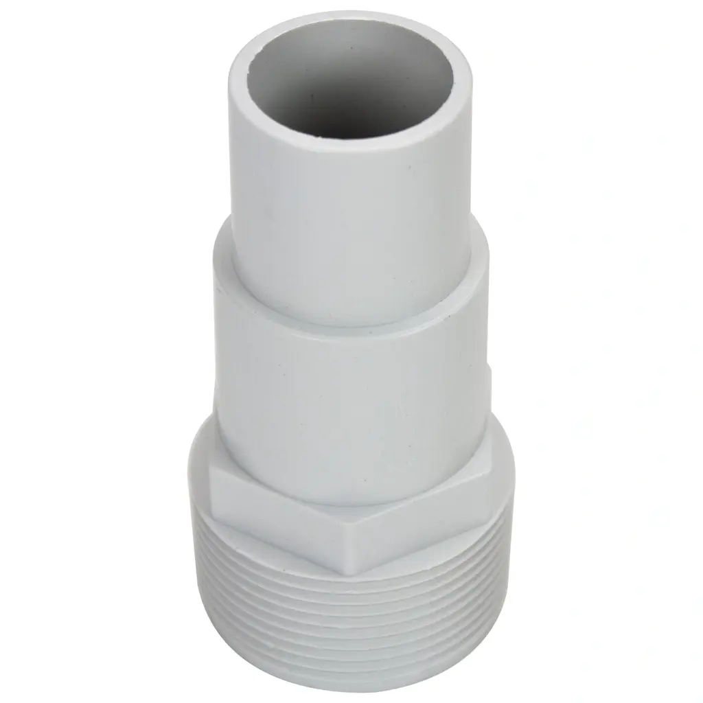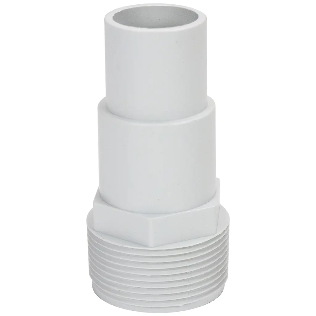 This hose adapter can be used to attach a vacuum hose or pool cleaner to threaded port. Backwashing your pool filter is essential for keeping your water clear and so this hose adapter is necessary. This type of accessory is very much crucial for a well-maintained pool. Product Features: Can also be used to connect a pool filter hose to a filter or pump or to connect your backwash hose to the filter valve Male threads fits 1.5" female Features a stepped smooth opposite end that fits 1.25" and 1.5" hoses Recommended for use with a stainless steel hose clamp Dimensions: 4" high x 1.75" diameter Material(s): heavy duty plasticWhile we aim to supply accurate product information, it is sourced by manufacturers, suppliers and marketplace sellers, and has not been provided by Overstock.