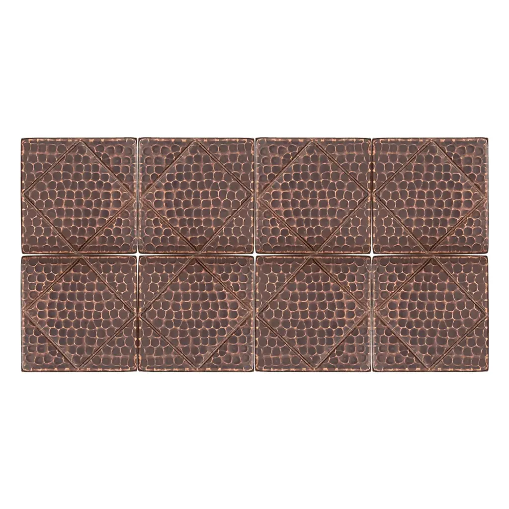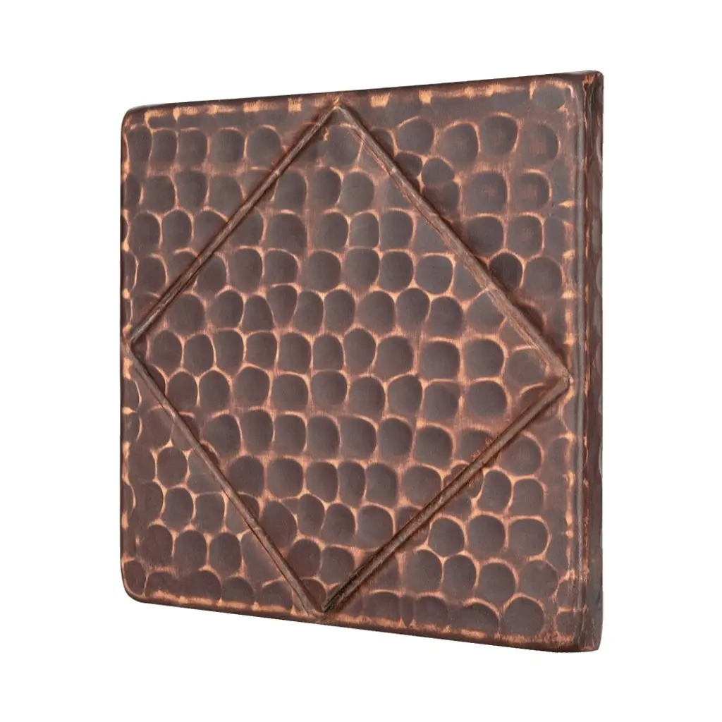 Copper Tiles are the ideal option to accentuate your home. You can create a focal point with an assortment of designs to choose from. Mix and match with our other sized tiles to create an eye-catching design.4" x 4" Hammered Copper Diamond Design Tile Package of 8 Features:IMPORTANT NOTE: DUE TO THE HANDCRAFTED NATURE OF THIS PRODUCT SMALL VARIANCES IN SIZE AND COLOR MAY OCCUR.Tile Packages Suggested Accessories: