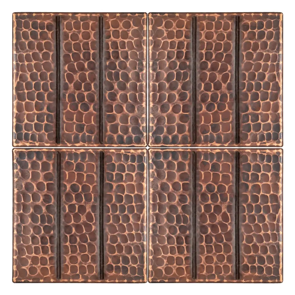 Copper Tiles are the ideal option to accentuate your home. You can create a focal point with an assortment of designs to choose from. Mix and match with our other sized tiles to create an eye-catching design.4" x 4" Hammered Copper Linear Tile Package of 4 Features:IMPORTANT NOTE: DUE TO THE HANDCRAFTED NATURE OF THIS PRODUCT SMALL VARIANCES IN SIZE AND COLOR MAY OCCUR.Tile Packages Suggested Accessories: