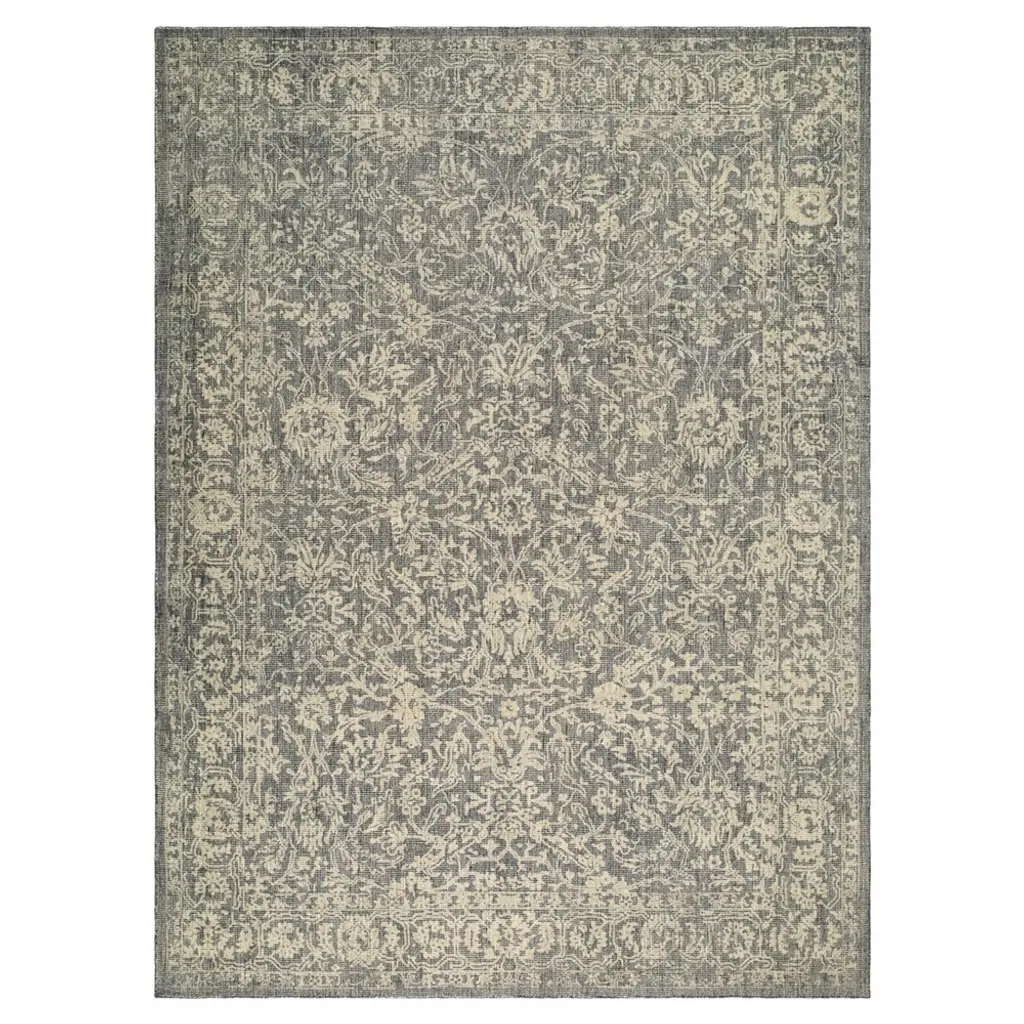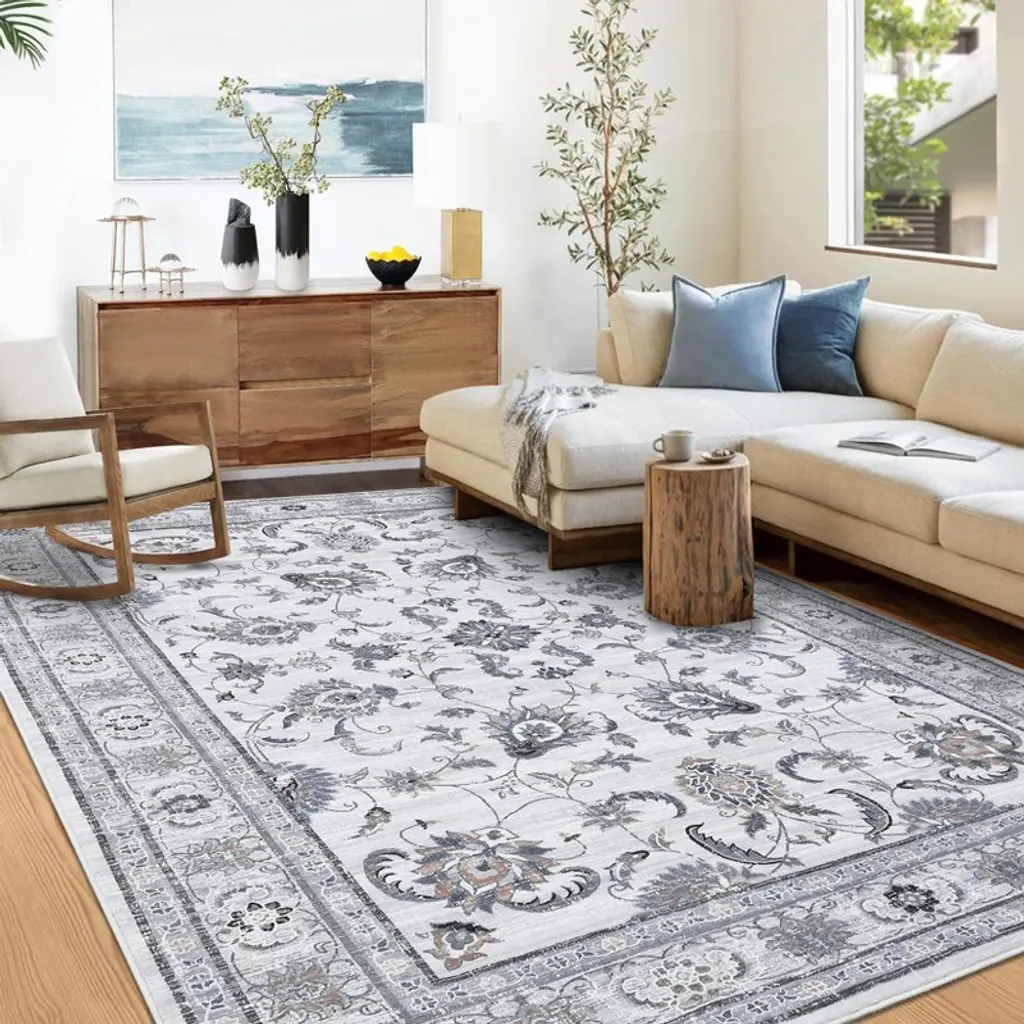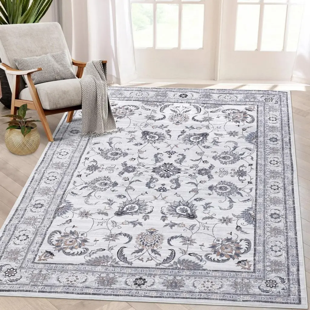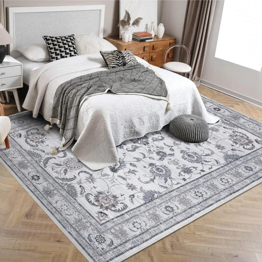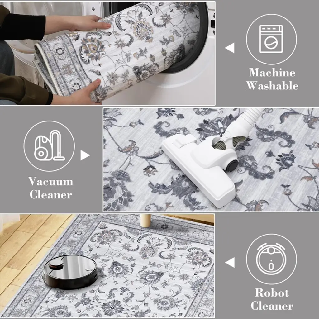 4 X 6 Ft Polyester Initation Gray Rectangular Hallway Bathroom Entryway Kitchen Office Foldable Flower Printed Washable Area Rug