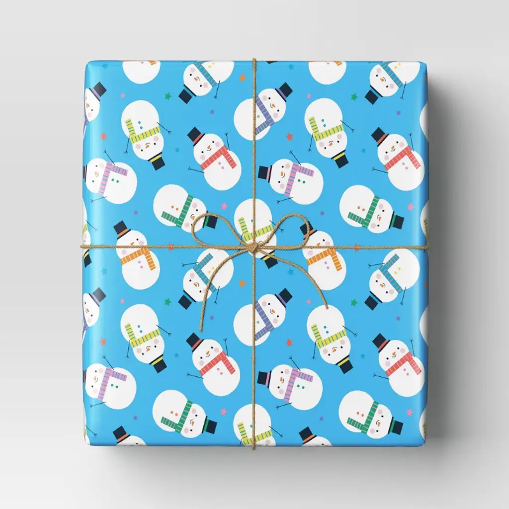 Wrap your holiday surprises with cheer using this 40-Inch Christmas Snowmen on Light Blue Gift Wrap from Wondershop™. Featuring allover snowmen graphics wearing multicolored scarves on a blue background, this festive gift wrap adds cute style to your gifts. This paper gift wrap comes in a 125-foot length roll that makes it great for wrapping a variety of holiday presents.Welcome to the Wondershop™.