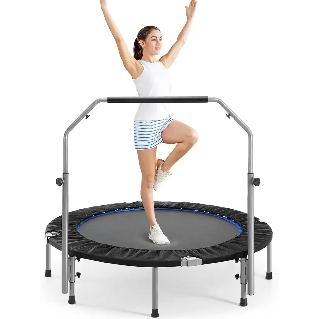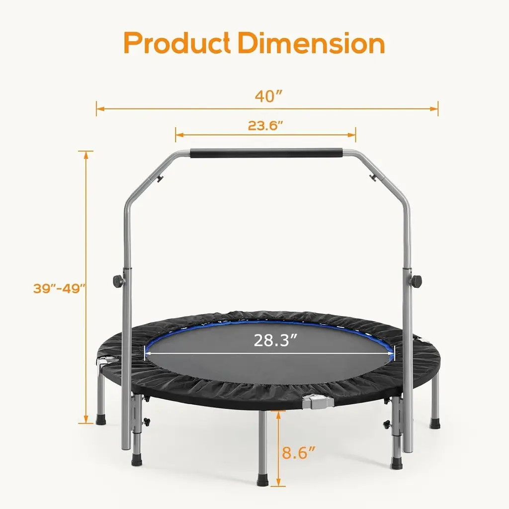40/48" Foldable Mini Trampoline For Adults, Rebounder Trampoline For Adults With Adjustable Bar, Indoor Trampoline - 40inch-N