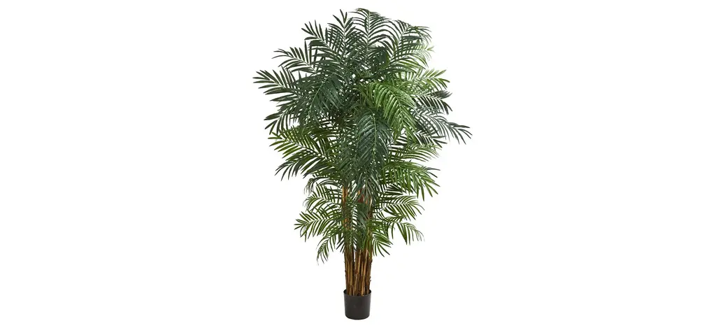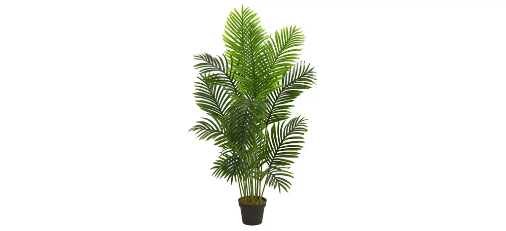 It's summer all year long with this Areca Palm Artificial Tree. This lifelike faux Areca palm has variegated palm fronds pointing in every direction in a fountain like way - the trunk with naturally occurring detail has different hues. Standing 40" this tree is UV resistant and safe for outdoor use. Perfect for a living room, backyard, foyer or bathroom.