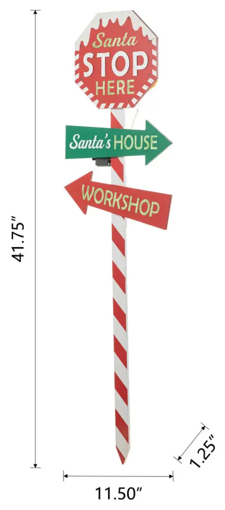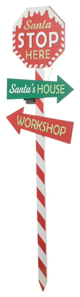 41.75"h Lighted Wooden "Santa Stop Here" Yard Stake