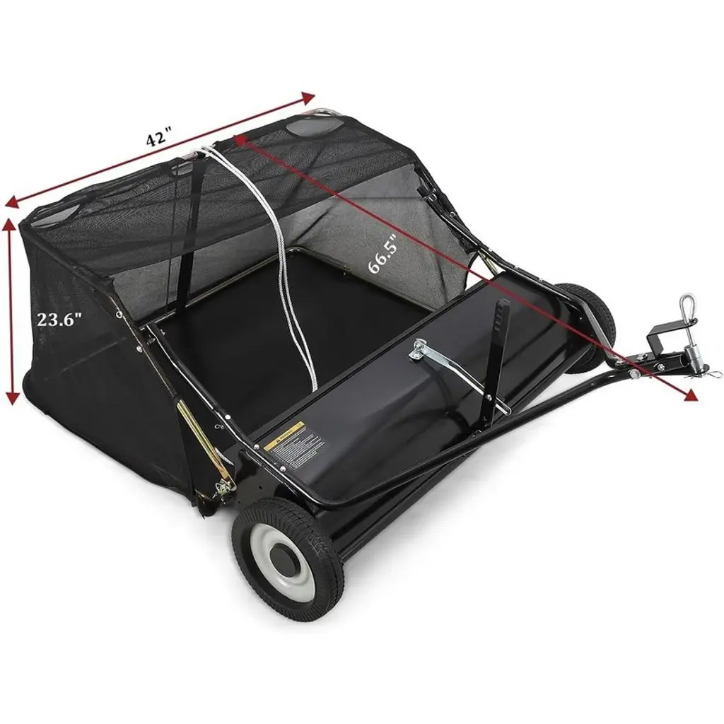 Tow Behind Lawn Sweeper 42 Inch, Large Capacity Heavy Duty Leaf Collector with Adjustable Sweeping Height
