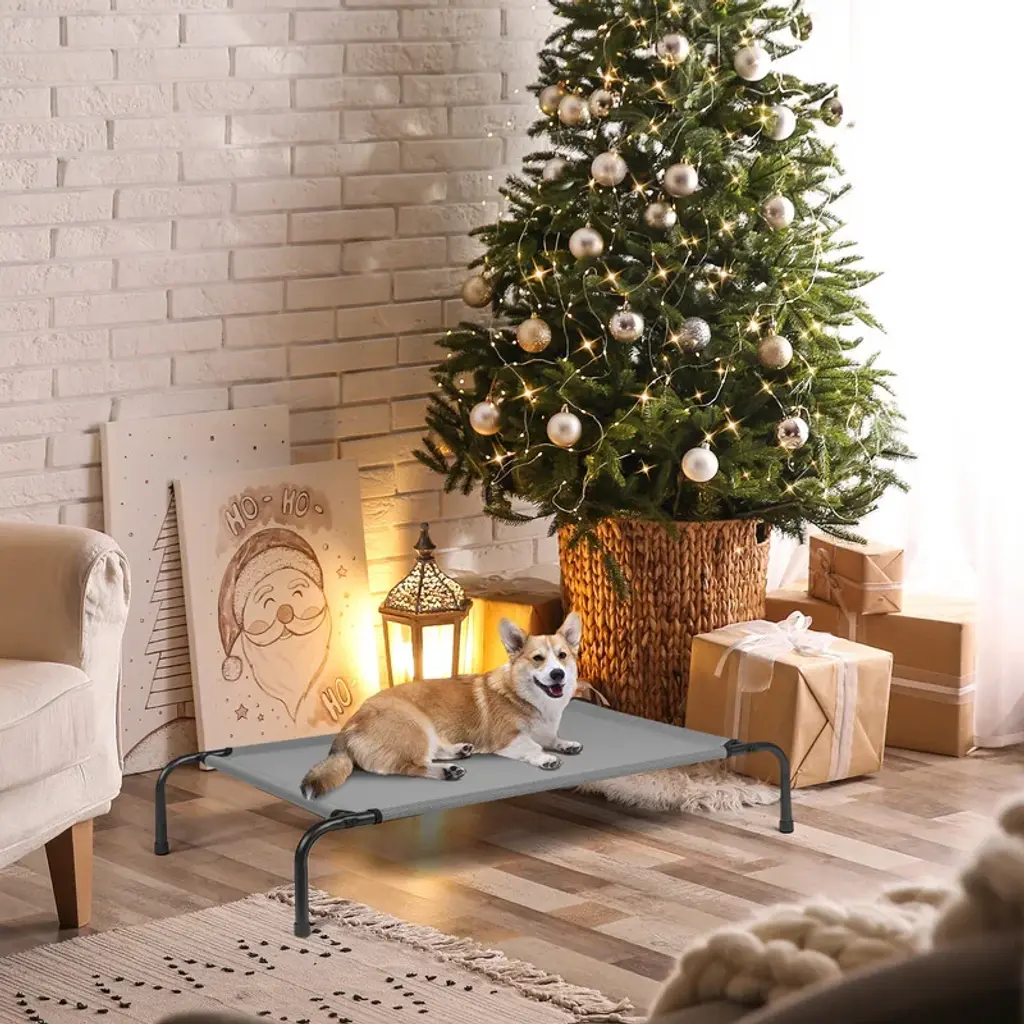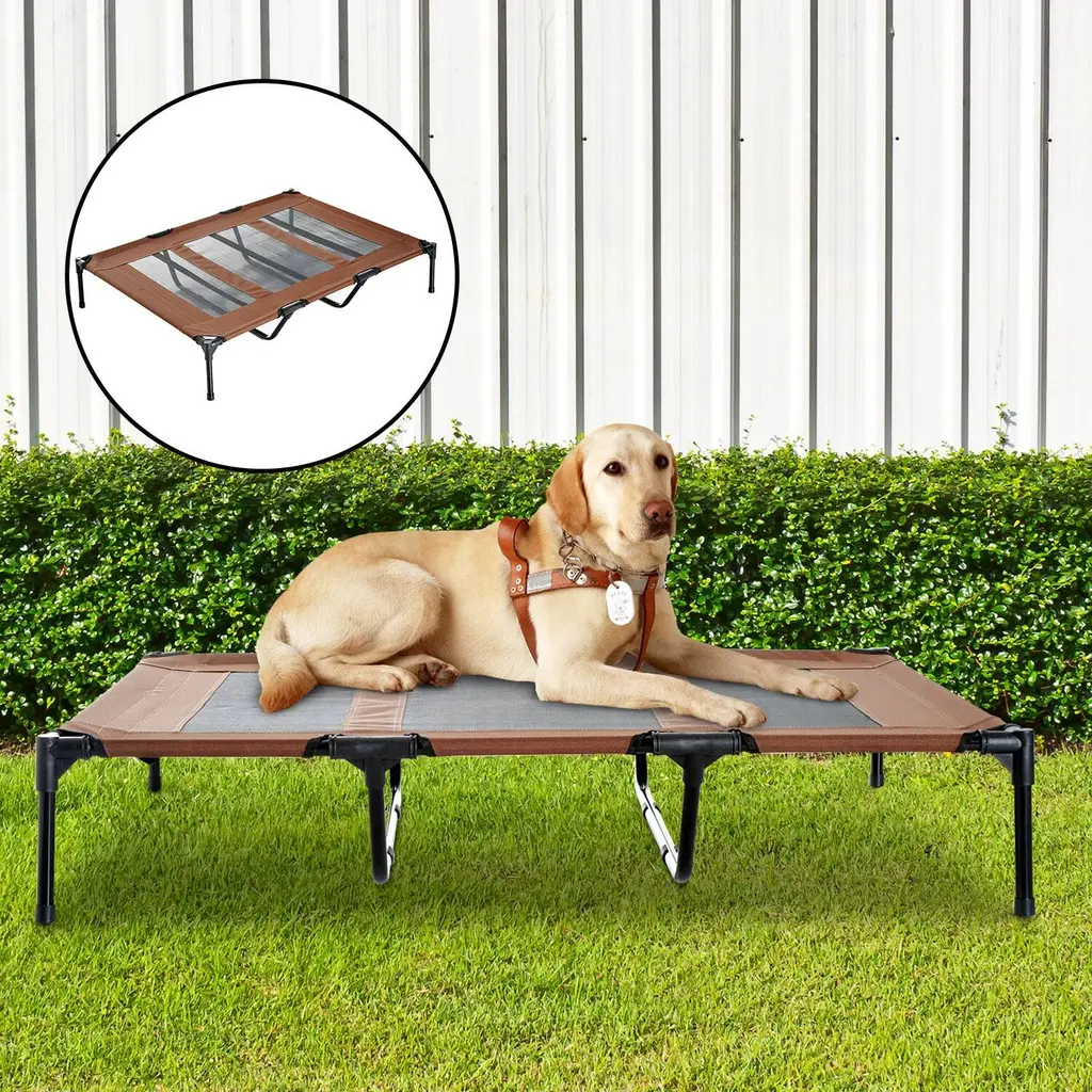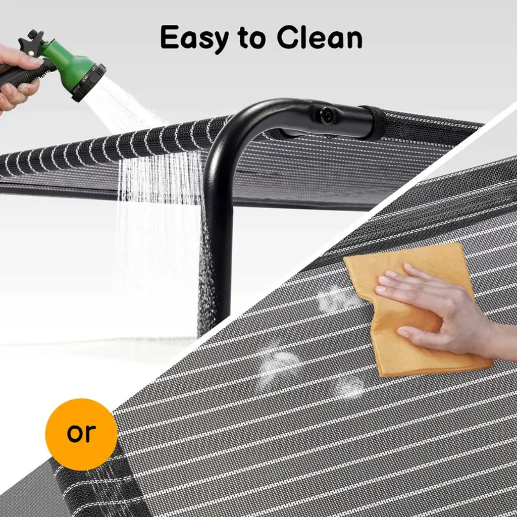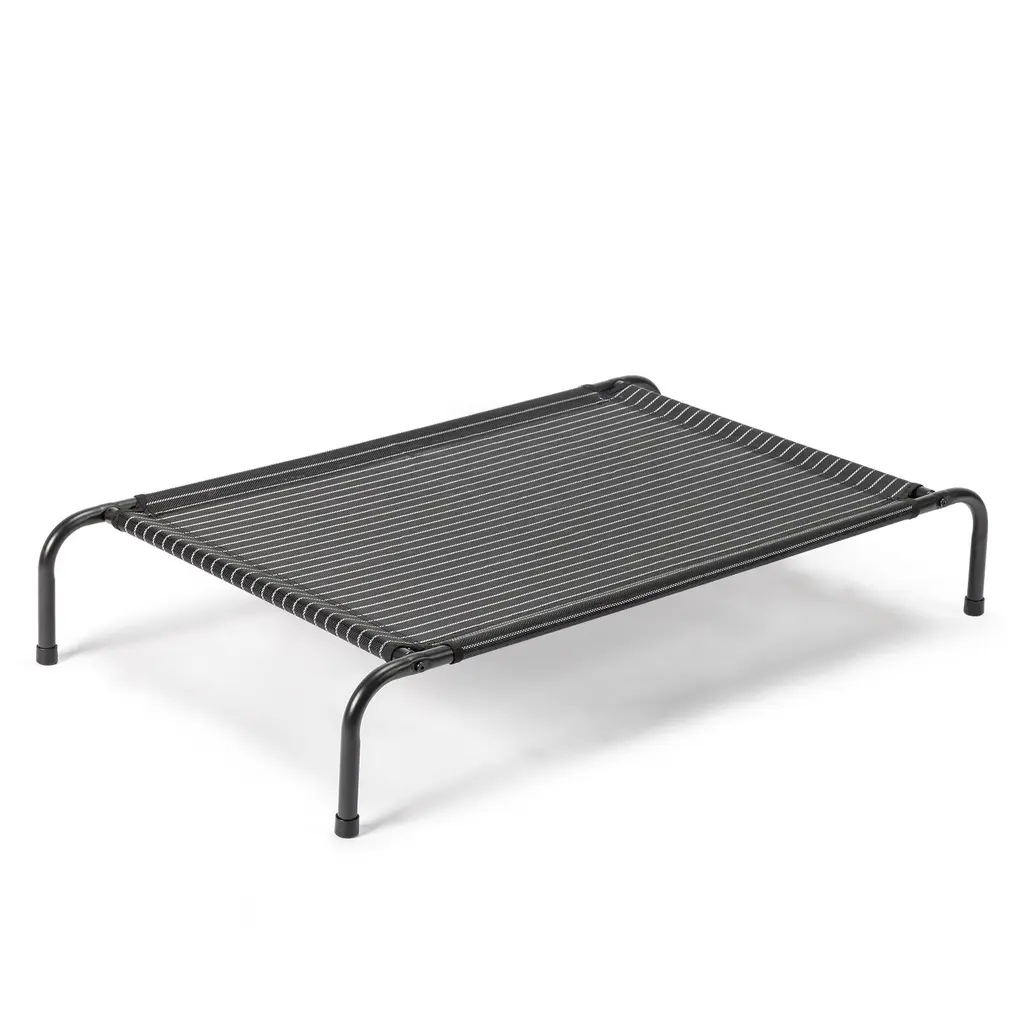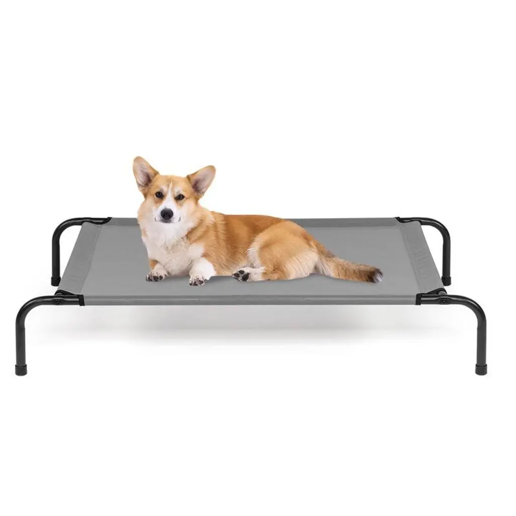 Introduction:Our Outdoor Pet Bed is the ultimate choice for pet owners who want to provide their furry friends with a safe, comfortable, and durable resting spot. Designed specifically for outdoor use, this pet bed features a sturdy black iron frame and a breathable teslin mesh top, ensuring your pet stays cool and comfortable even in the warmest weather. Suitable for dogs of various sizes, this bed offers a cozy and secure resting spot for your furry friend. Order yours today and let your pet enjoy the great outdoors in comfort and style!Features:1.Sturdy Iron Frame: Constructed with high-quality black iron pipes, the frame of this pet bed is designed to withstand the elements and support the weight of even larger pets.2.Breathable Mesh Top: The teslin mesh top allows for ample airflow, keeping your pet cool and comfortable, while also providing a great view of the surroundings.3.Comfortable Design: The bed's surface is spacious and plush, providing your pet with a cozy and inviting place to rest.4.Perfect for Outdoor Use: Whether you're camping, hiking, or just spending time in the yard, this pet bed is the perfect addition to your outdoor adventures.5.Durable and Easy to Clean: The mesh top is resistant to dirt and debris, making it easy to clean and maintain.Specification:Dimensions: 43 in. (Width) x 26 in. (Depth) x 8 in. (Height)Frame Material: Black Iron PipeBed Surface Material: Teslin MeshConstruction: Sturdily stitched and sewn for maximum durability