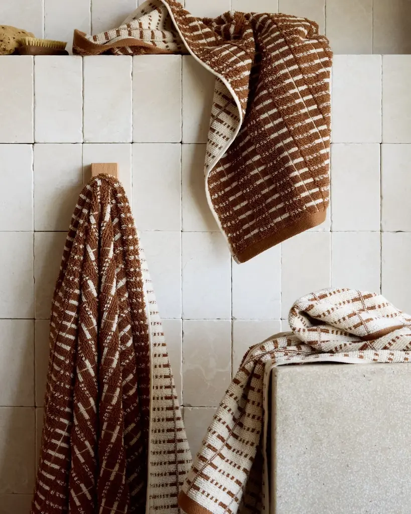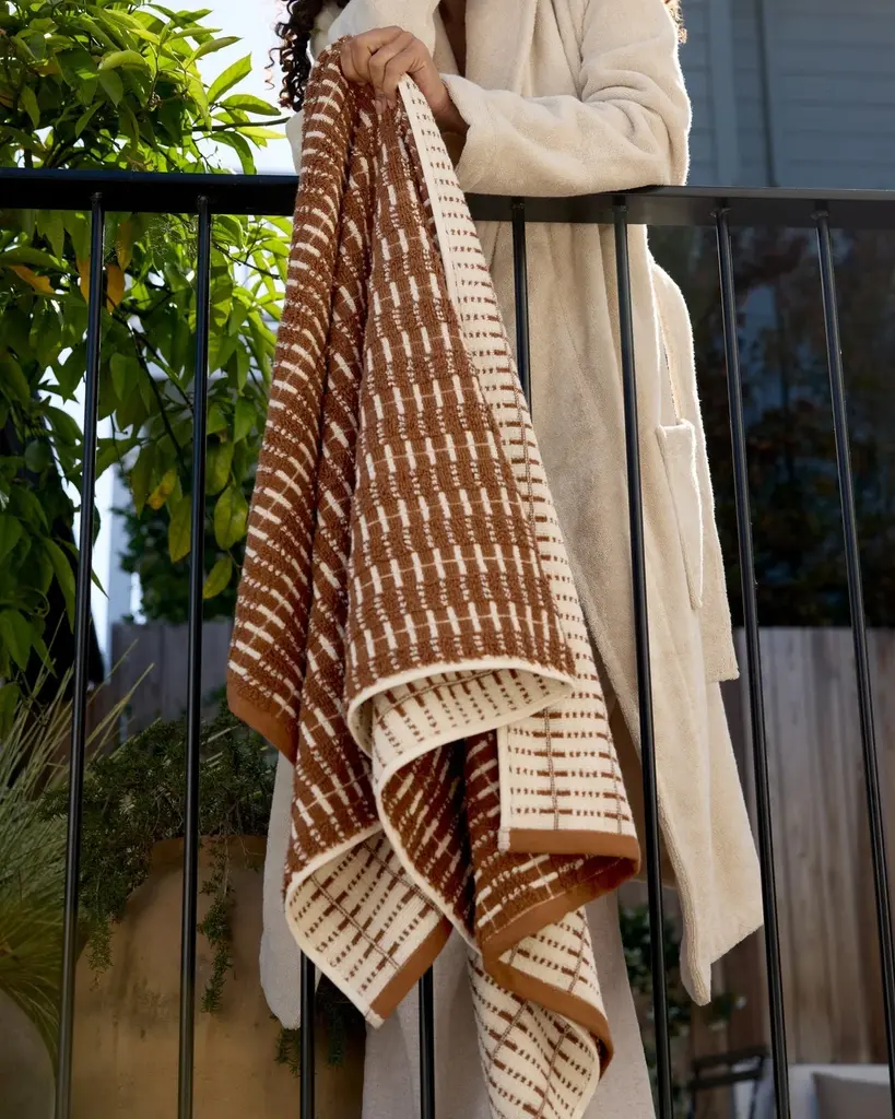 Striking in its simplicity, this towel is woven from organic cotton and yarn-dyed for rich, lasting color. The two-tone weave and reversible pattern offer depth and effortless styling from every angle. Never too soft, never too dry its the perfect balance of plush and absorbent.