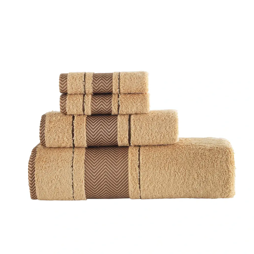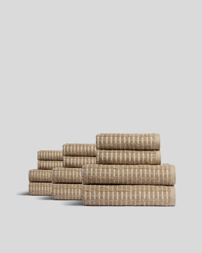 4+4 Organic Ladder Stripe Bath Bundle - Tobacco And Cream