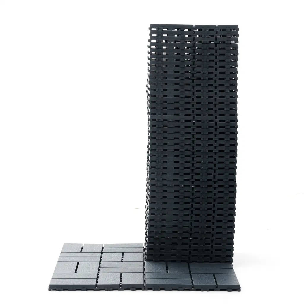 44 Pack Plastic Interlocking Deck Tiles 12"x12" Square Waterproof Outdoor Deck Tiles All Weather For Poolside Balcony Backyard - Grey