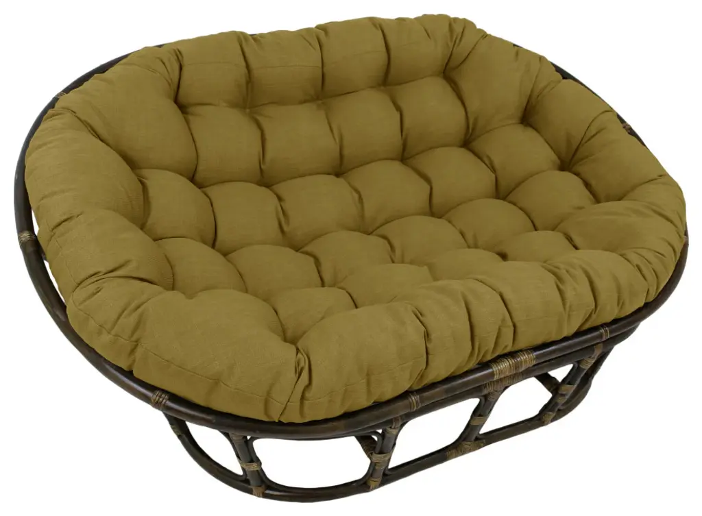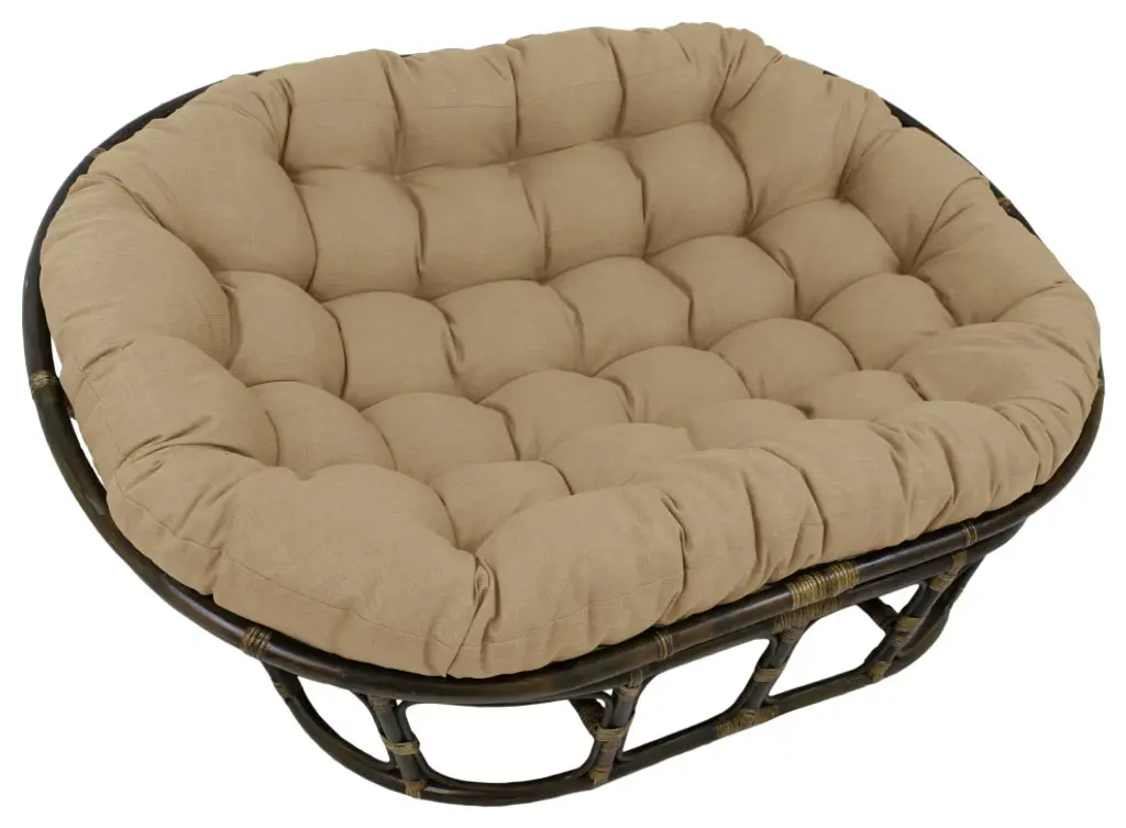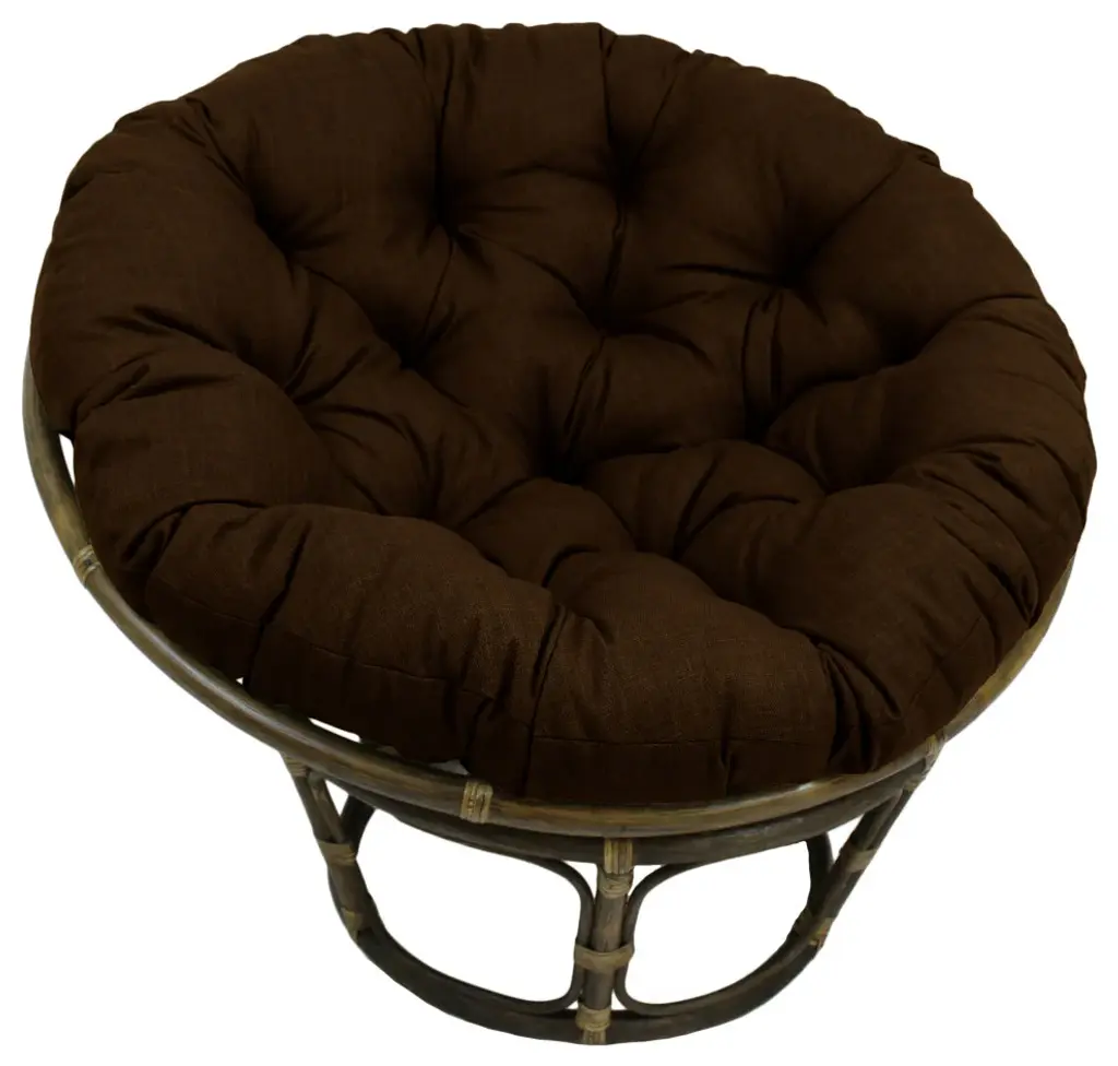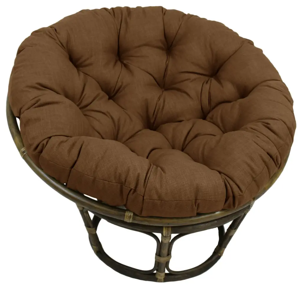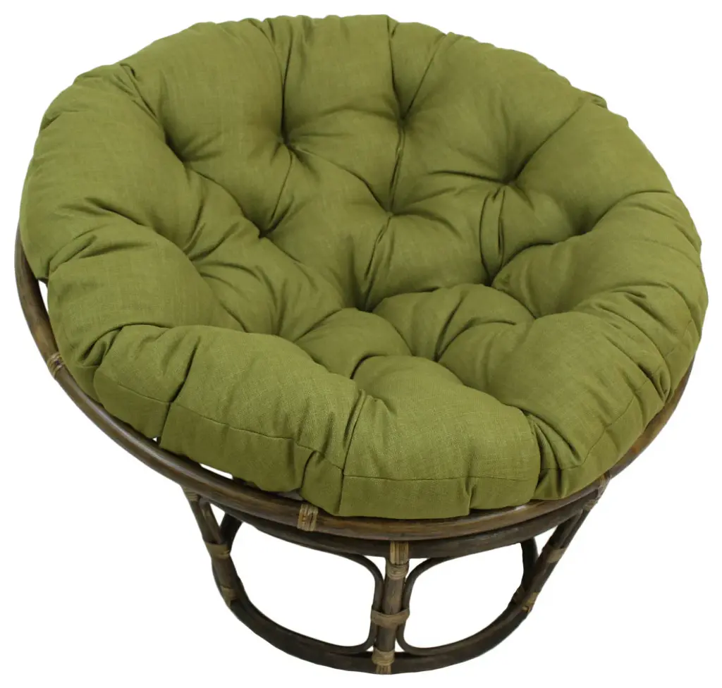 Add a touch of style and comfort to your outdoor furnishings with this 44-inch spun polyester papasan cushion. This cushion features a classic tufted cushion style in a variety of striking colors of UV-resistant spun resistant fabric.