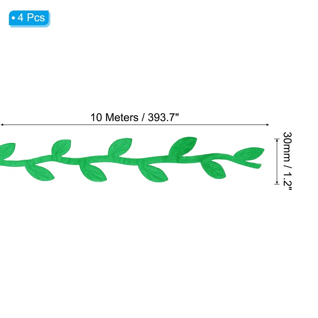 It is great for a wide range of craft projects, including floral arrangements, wreaths, gift wrapping, DIY decorations, scrapbooking. It provides endless creative possibilities. Suitable for birthdays, Halloween, Christmas, parties, bridal showers, and fall weddings. It provides endless creative possibilities.SpecificationColor: Gold ToneMaterial: PolyesterSingle Roll Size: 10 Meters x 30mm / 393.7 x 1.2 inch(L*W)Packing List: 4 Roll x Decorative Leaves RibbonAdvantageNatural and Realistic: This leaf ribbon features a natural and realistic design, with detailed leaves that resemble the beauty of fresh foliage, adding a touch of nature to your craft projects.Quality Material: Crafted from durable materials, this leaf ribbon is flexible and resistant to fraying or fading, ensuring long-lasting use and vibrant color retention.InstructionThe leaf plant ribbon is easy to cut and shape, allowing you to customize its length and create desired designs and arrangements. Its flexibility makes it effortless to incorporate into various crafts.NOTE: Depending on your project, you may need different widths or lengths. Determine the appropriate size to achieve the desired effect and ensure it will be sufficient for your needs.