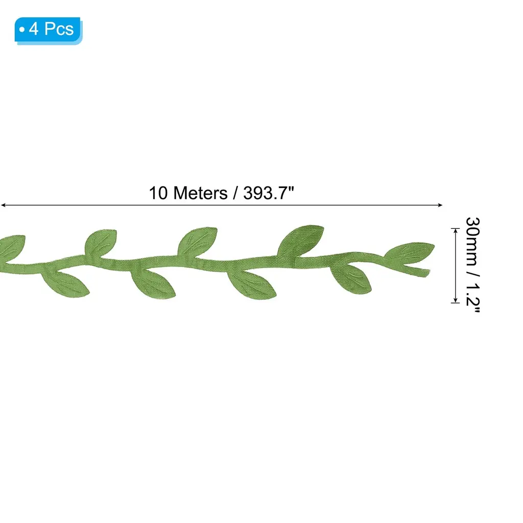It is great for a wide range of craft projects, including floral arrangements, wreaths, gift wrapping, DIY decorations, scrapbooking. It provides endless creative possibilities. Suitable for birthdays, Halloween, Christmas, parties, bridal showers, and fall weddings. It provides endless creative possibilities.SpecificationColor: Gold ToneMaterial: PolyesterSingle Roll Size: 10 Meters x 30mm / 393.7 x 1.2 inch(L*W)Packing List: 4 Roll x Decorative Leaves RibbonAdvantageNatural and Realistic: This leaf ribbon features a natural and realistic design, with detailed leaves that resemble the beauty of fresh foliage, adding a touch of nature to your craft projects.Quality Material: Crafted from durable materials, this leaf ribbon is flexible and resistant to fraying or fading, ensuring long-lasting use and vibrant color retention.InstructionThe leaf plant ribbon is easy to cut and shape, allowing you to customize its length and create desired designs and arrangements. Its flexibility makes it effortless to incorporate into various crafts.NOTE: Depending on your project, you may need different widths or lengths. Determine the appropriate size to achieve the desired effect and ensure it will be sufficient for your needs.