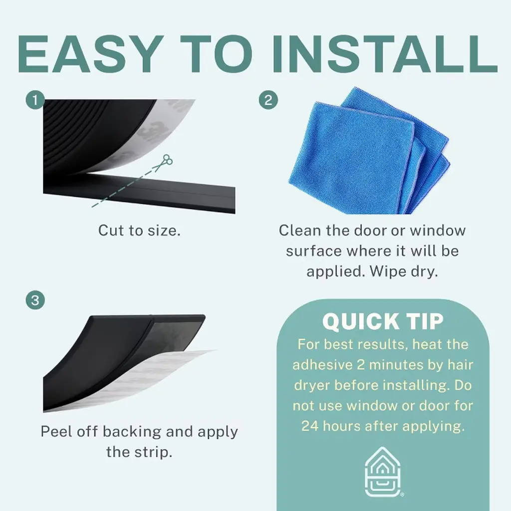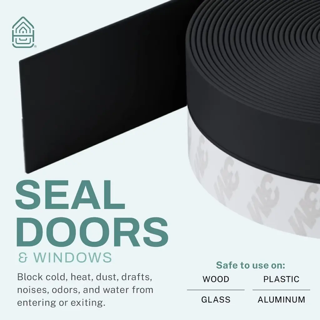 Use silicone weatherstripping for high-quality windows and doors that need to perform in all weather conditions. Cover up gaps between the door or window and its frame to keep the inside of your home or business more comfortable. Save on energy, electricity, and heating/cooling costs.PRODUCT FEATURES:2 Pack of 16.5 Ft. Roll (33 Ft. Total)For Doors and WindowsMade of Silicone RubberResilient and FlexibleNon-ScratchingEasy to InstallWide Surface ApplicationAVAILABLE IN:4 Colors: Red, Black, White, Clear3 Sizes: 25mm, 35mm, 45mmEASY INSTALLATION1. Cut to size.2. Clean the door or window surface where it will be applied. Wipe dry.3. Peel off backing and apply the strip.* For best results, heat the adhesive 2 minutes by hair dryer before installing. Do not use window or door for 24 hours after applying.PREVENT ENVIRONMENTAL INTRUSIONSIsn’t great when you can truly block out the world and finally enjoy some peace and quiet? Use our versatile weatherstripping adhesive to stop cold, heat, dust, drafts, noises, odors, and water from entering or exiting. Effectively adheres to a variety of surfaces including wood, glass, plastic, and aluminum without damaging. The mechanical properties of silicone rubber allow it to perform consistently at high and low temperatures with superior insulating ability.VERSATILE DOOR & WINDOW APPLICATIONSuitable for a wide variety of household and commercial sealing applications on exterior doors and windows, as well as interior structures and frames. Use it effectively for threshold weatherstripping, window draft seal, door draft seal, refrigerator door sealer, shower door seal, acoustic door sealant, French door seal, sliding glass door weatherstripping, patio doors insulation, window winter seal, and double hung window seal.