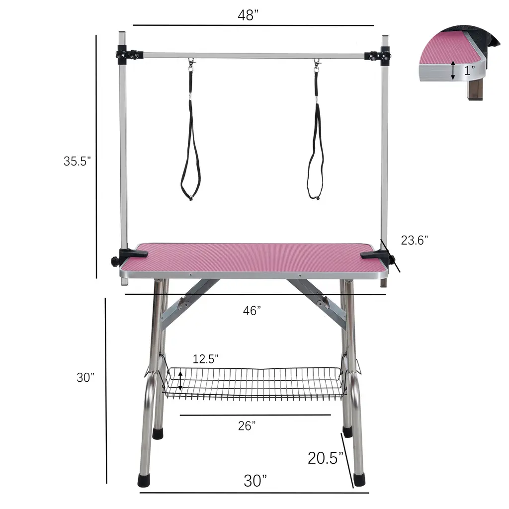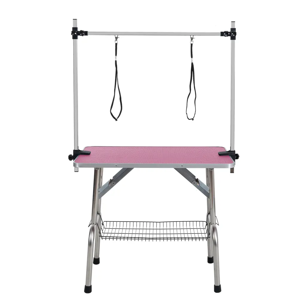 46" Folding Dog Pet Grooming Table Stainless Steel Frame Rubber Mat On Board With Adjustable Arm Pet Dog Cat Grooming Table - Pink