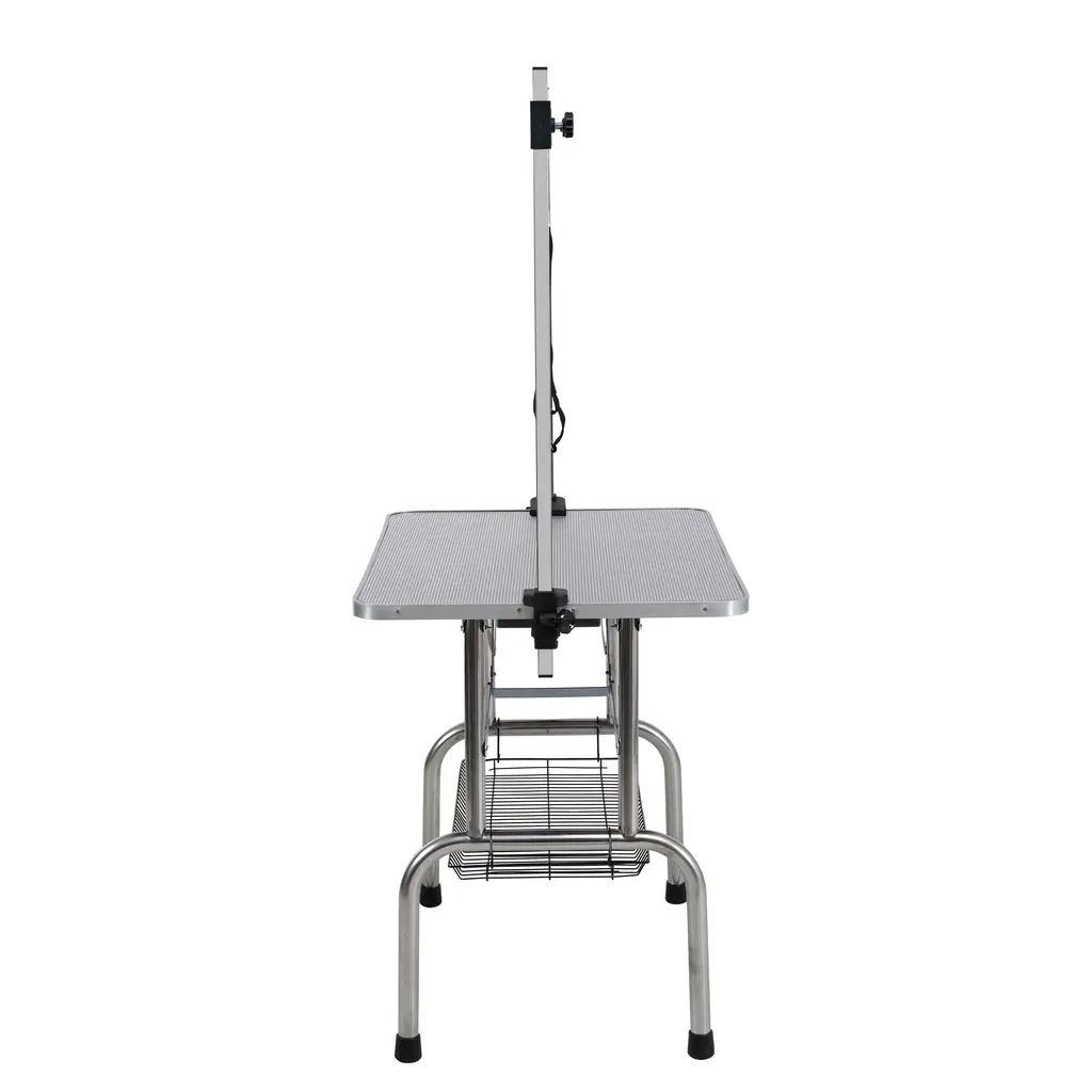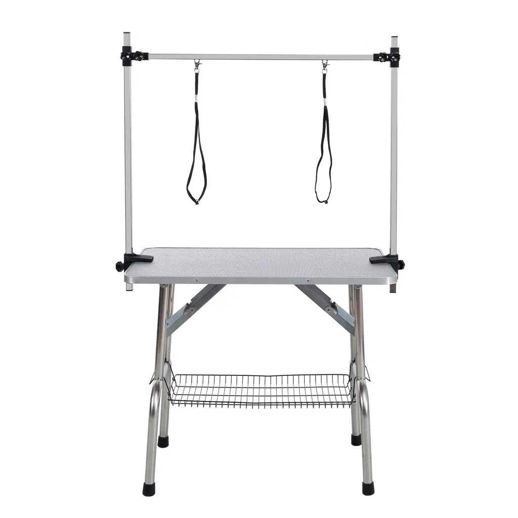 46" Folding Dog Pet Grooming Table Stainless Steel Frame Rubber Mat On Board With Adjustable Arm Pet Dog Cat Grooming Table - Silver Grey