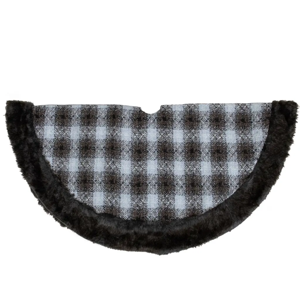48" Brown And White Plaid Christmas Tree Skirt With Faux Fur - 48 - Brown