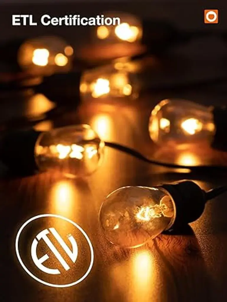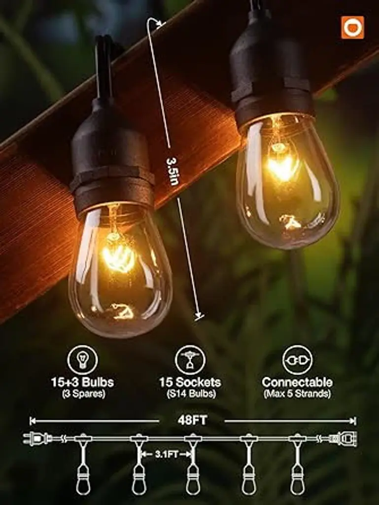 48 Ft Outdoor String Lights Commercial Grade Weatherproof Strand