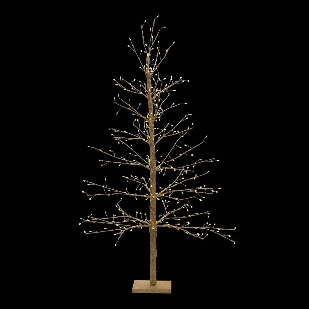 Elevate your holiday decor with the Gold LED Twig Tree, a dazzling statement piece designed to bring warmth and sophistication to any space. Featuring a chic glittered gold finish and delicate mini LED lights, this elegant tree casts a radiant glow that enhances both modern and traditional holiday settings. The bendable twig branches allow for customizable shaping, making it a stunning addition to your entryway, living room, tabletop, or event display. Crafted with a durable iron frame and powered by a UL plug, this versatile holiday accent is perfect for creating a magical seasonal ambiance.