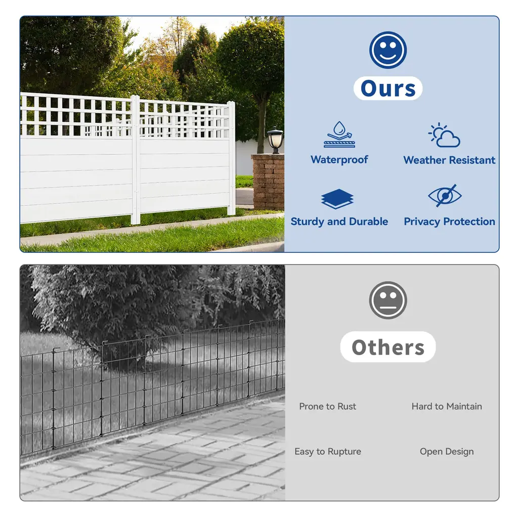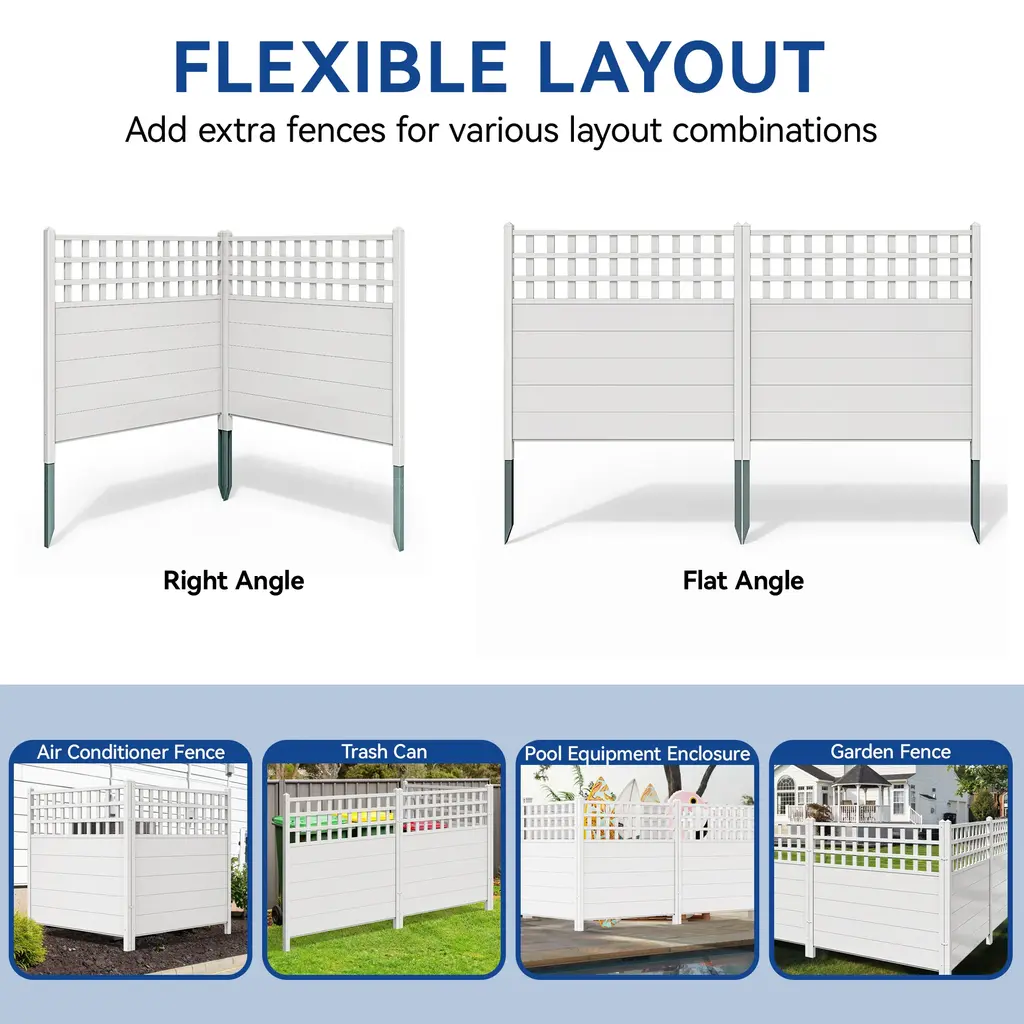 The 48 in. H x 48 in. W Plastic Privacy Fence Panel is a practical and cost-effective solution for creating privacy and defining boundaries in your outdoor space. With dimensions of 48 inches in height and 48 inches in width, this privacy fence panel offers ample coverage, ensuring a secluded and private environment for your backyard, garden, or patio.Made from high-quality plastic materials, this fence panel is durable, lightweight, and resistant to weather elements such as rain, sun, and wind. It is designed to withstand outdoor conditions and maintain its appearance over time.The plastic construction of the panel provides a solid and opaque barrier, effectively blocking the view from outside and ensuring privacy. It offers a convenient way to prevent prying eyes or unwanted attention.Installation of the plastic privacy fence panel is straightforward and hassle-free. It can be easily assembled and secured to existing posts or structures, providing a quick and efficient solution for enhancing privacy and adding a touch of style to your outdoor area.