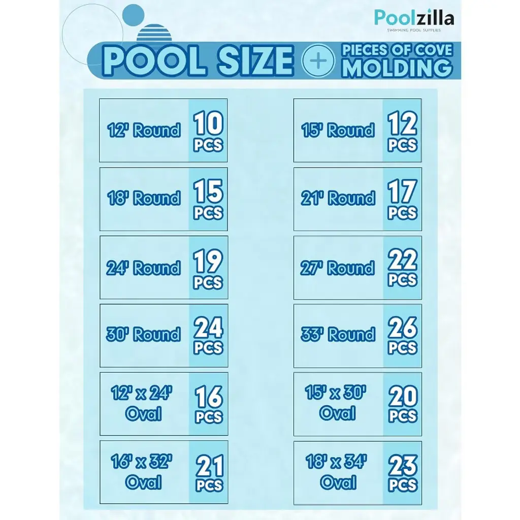 💧【Extend your Liners Life!】The Poolzilla Pool Cove is a padded molding that defends your pool liner from stress and premature stretch, it seamlessly attaches to the inside bottom of the pool wall.💧【Dimensions】The Pool Cove measures out to 48’’ - Inches long.💧【Features!】The pool cove goes between the metal frame pieces of your above-ground pool and the liner, alleviating strain on the liner seams and prevent premature wear by minimizing stretch.💧【Easy Install】The premium material of the cove allows for easy installation. It features a sticky back strip of tape that ensures it stays in place. Simply peel, stick, and secure it end to end around the inside perimeter of the pool.💧【Poolzilla】 Poolzilla cares deeply about the integrity of our products. We promise a risk-free shopping experience fully backed by our Quality Control, Customer Service and Technical Support Teams, located in New Jersey.