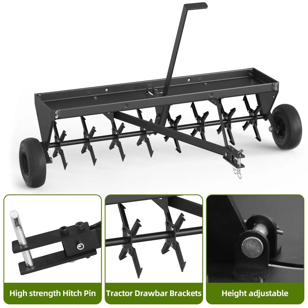 48 Inch Tow Behind Aerators With Durable Steel Tines Lawn Soil Penetrator With Extra-Wide Tow Bar For Lawn - Black