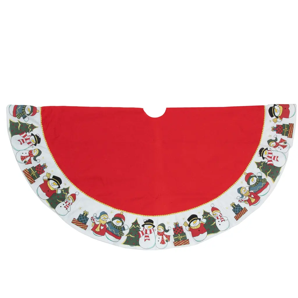48" Red And White Jolly Snowman Christmas Tree Skirt - 48 - Red