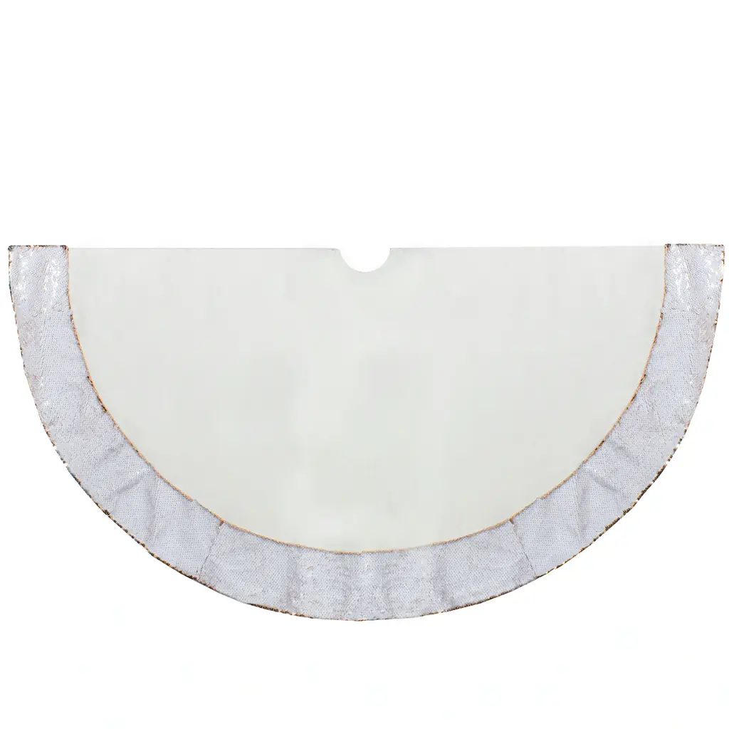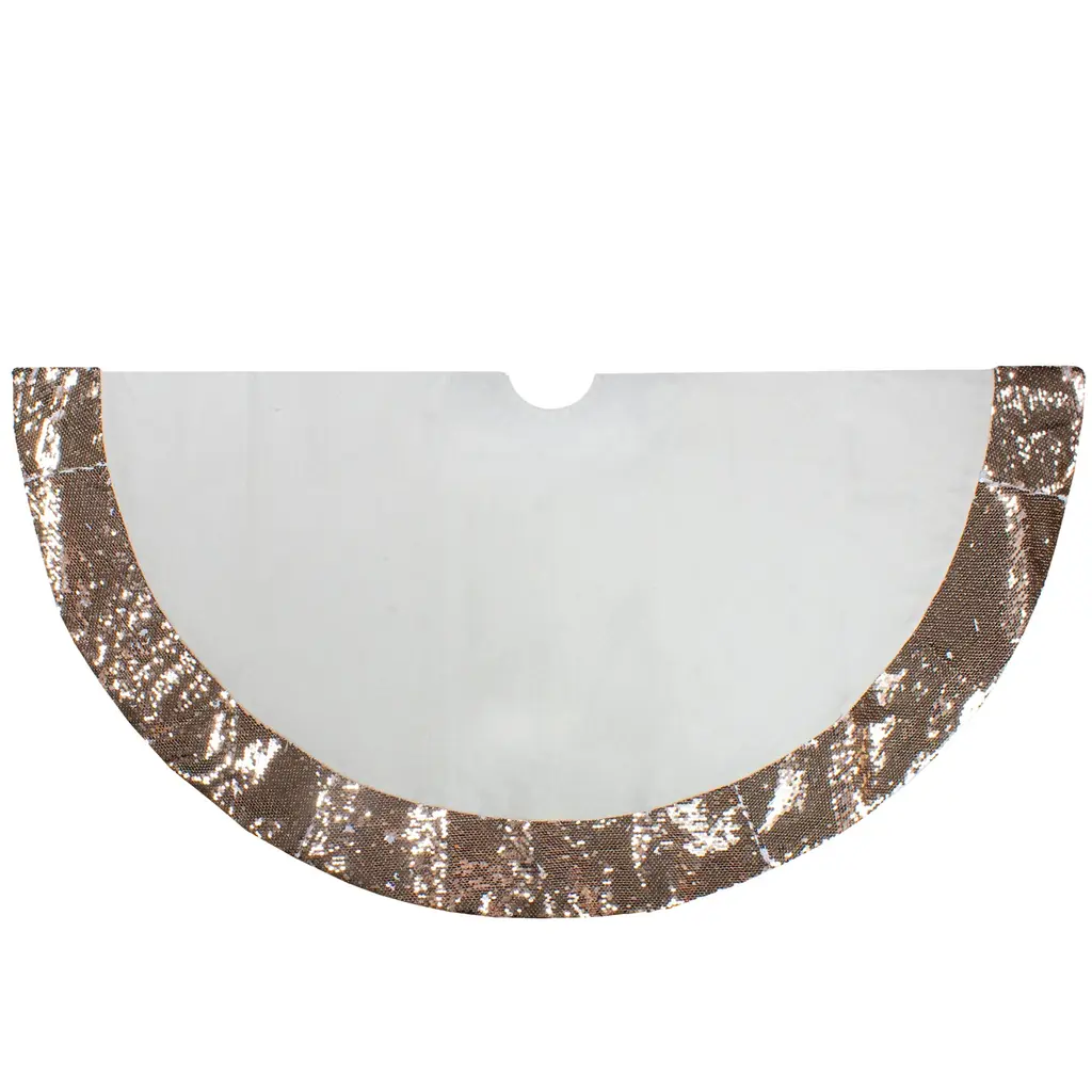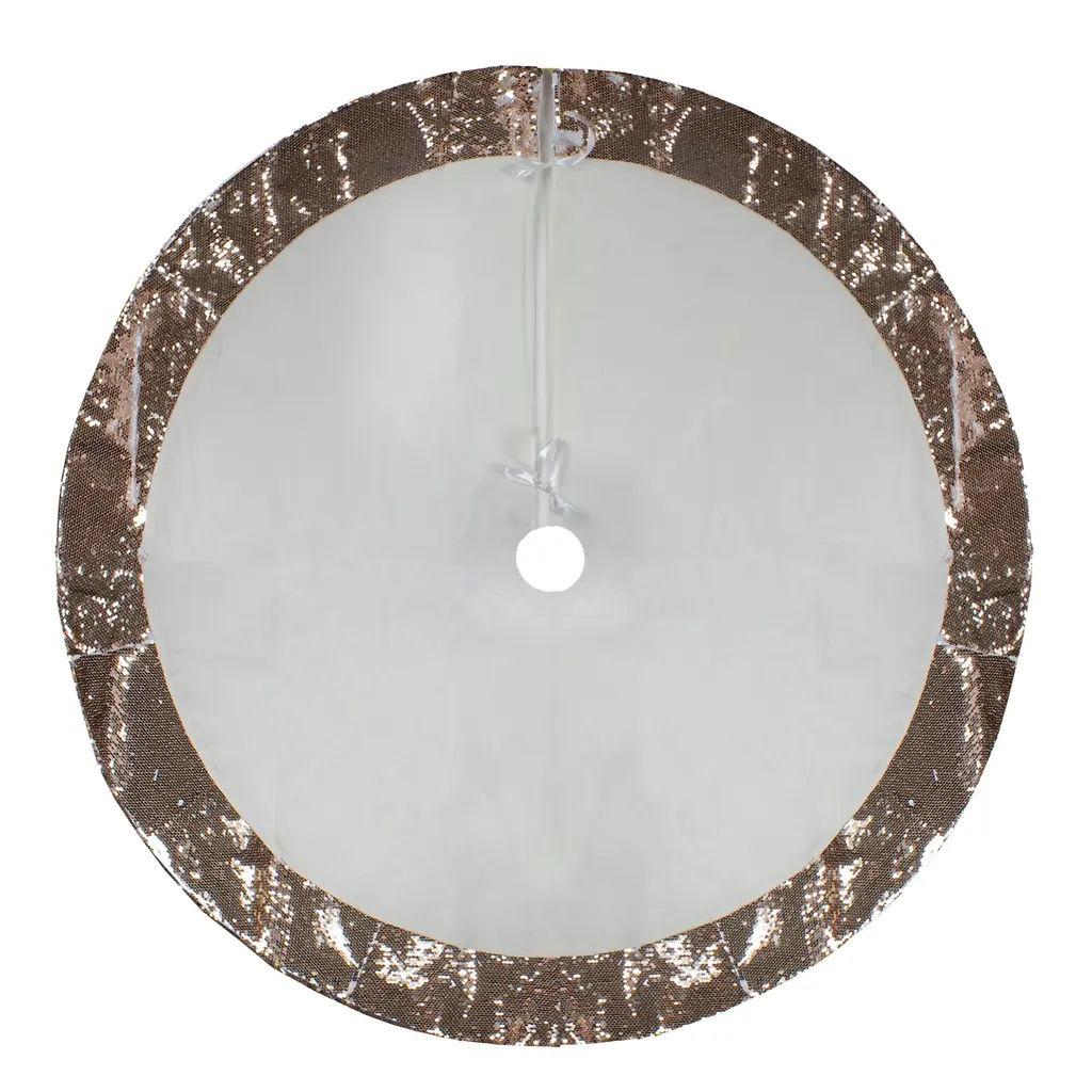 48" Rose Gold And White Reversible Sequin Trim Christmas Tree Skirt - White - Synthetic Fiber - Traditional - Indoor