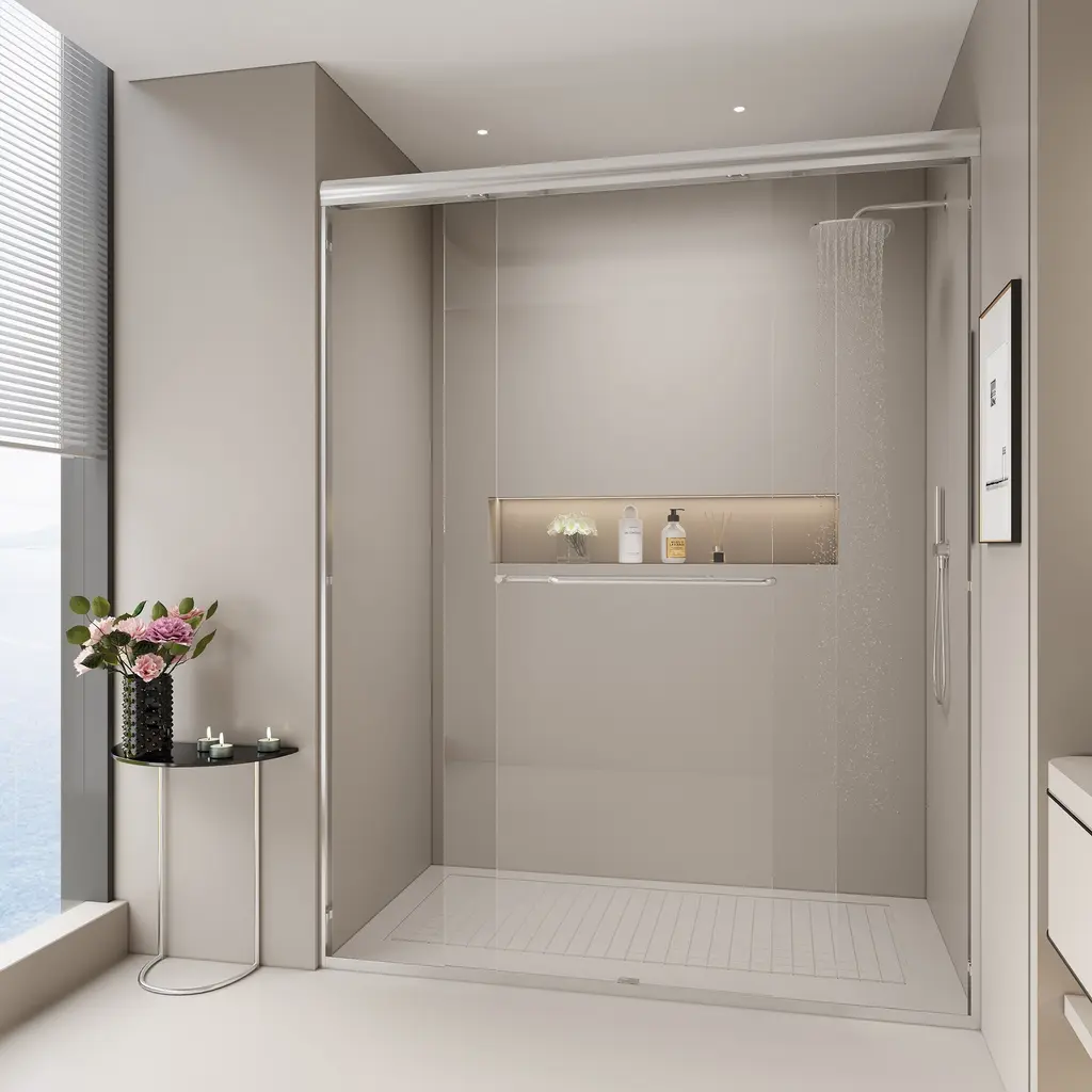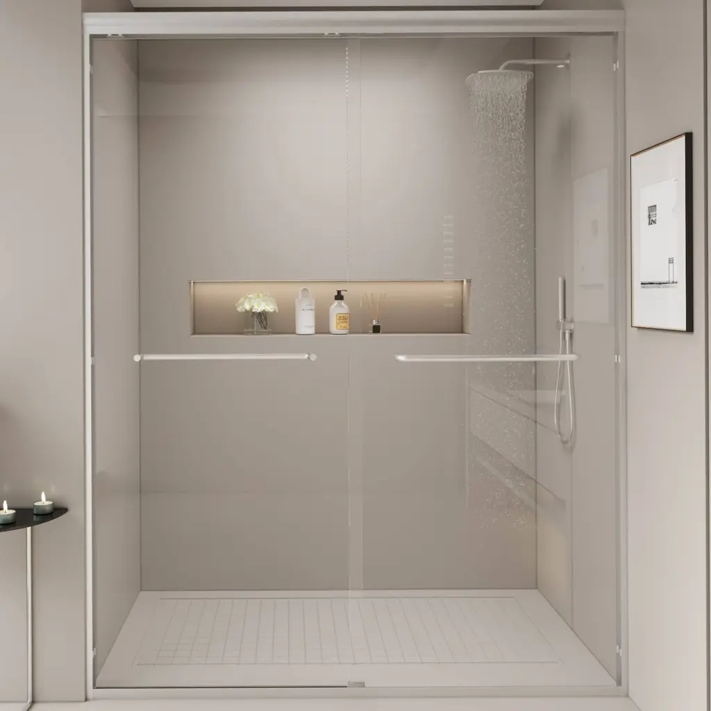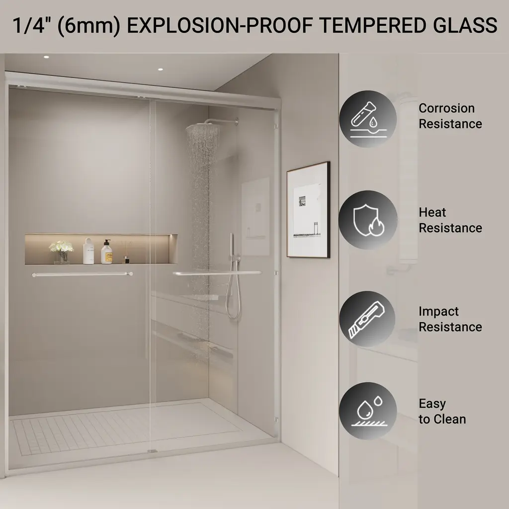 This double sliding shower door can be wall mounted to slide on the left or right side. The sliding operation is easy, and the anti-collision effect is safer.The framed shower door is made of high-quality outer frame material, which can make your bathroom safer and thicker, strong and rust-free.The shower door offers towel bars for additional bathroom storage. Provides easy access to towels and clothing after the shower.[Double Sliding Durable Frame] The high-quality aluminum frame enhances stability, while anti-collision corners protect the glass panels and ensure quiet operation.[Human-Focused Design] Equipped with full-length clear seals to prevent leaks and high-quality anti-crash angles to protect walls from scratches.[Safety Clear Glass] Made of 1/4" (6mm) tempered glass certified by ANSI, ensuring safety and durability, reducing stress about breakage.