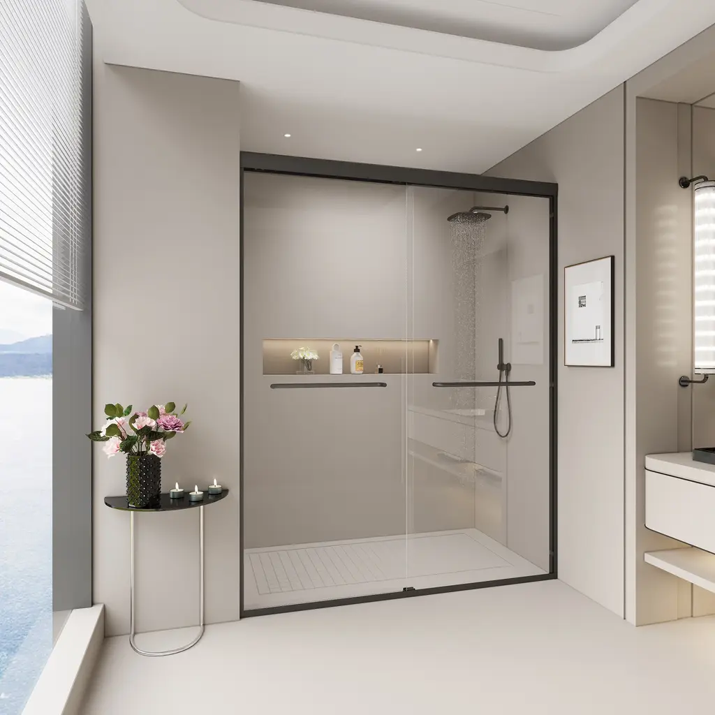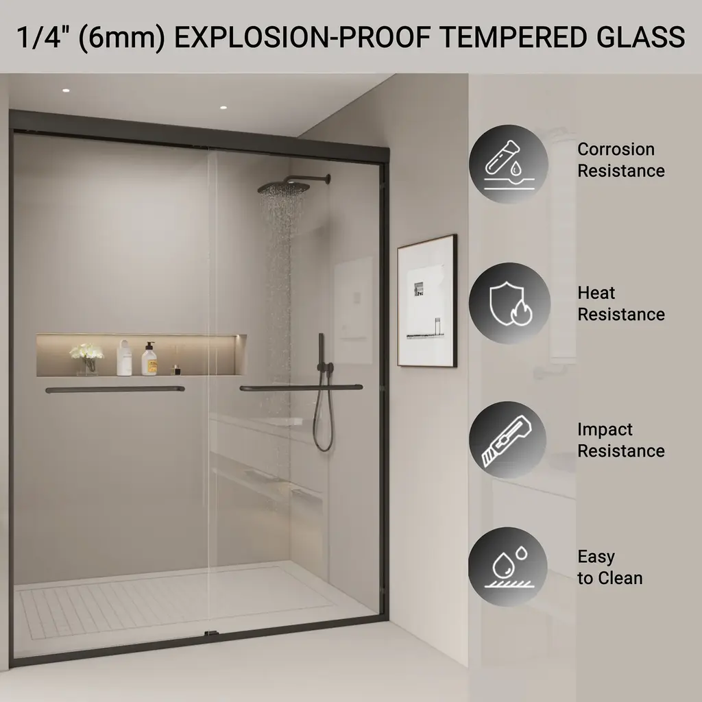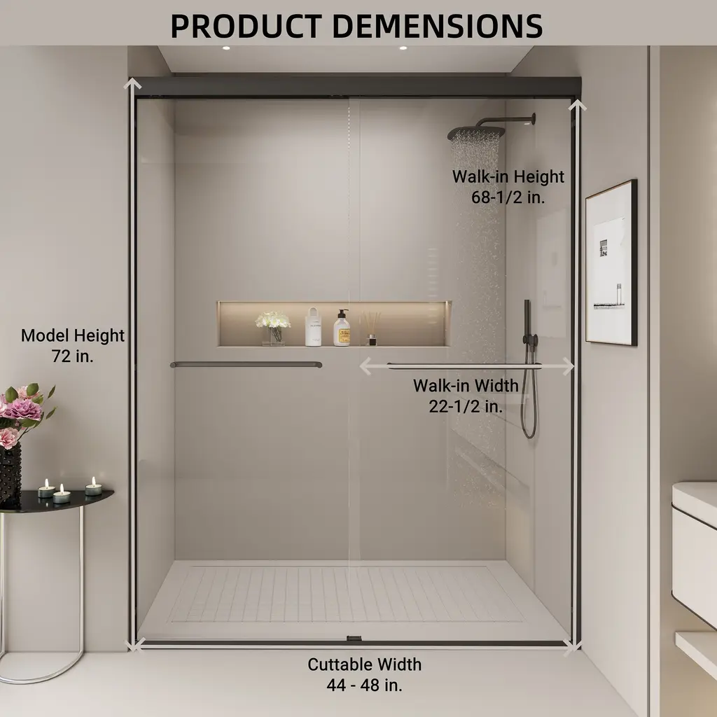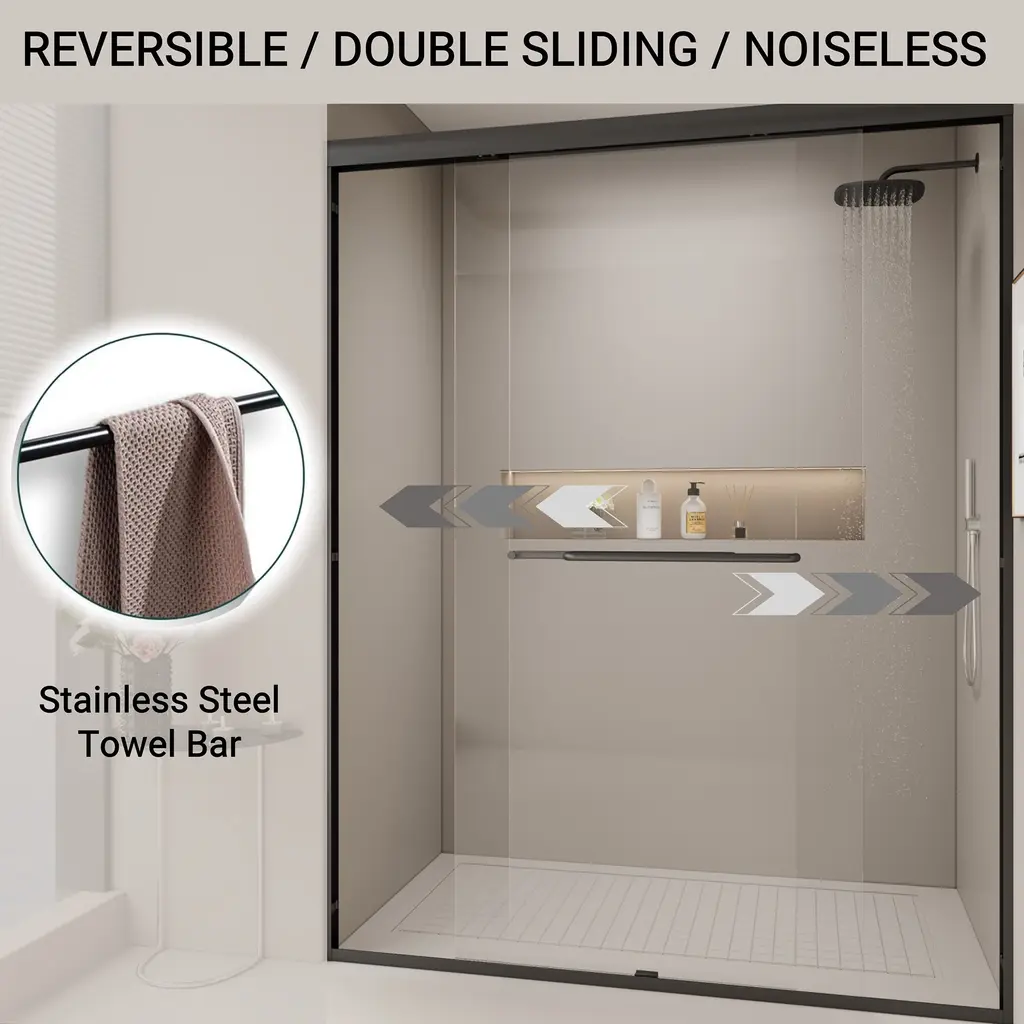 This double sliding shower door can be wall mounted to slide on the left or right side. The sliding operation is easy, and the anti-collision effect is safer.The framed shower door is made of high-quality outer frame material, which can make your bathroom safer and thicker, strong and rust-free.The shower door offers towel bars for additional bathroom storage. Provides easy access to towels and clothing after the shower.[Double Sliding Durable Frame] The high-quality aluminum frame enhances stability, while anti-collision corners protect the glass panels and ensure quiet operation.[Human-Focused Design] Equipped with full-length clear seals to prevent leaks and high-quality anti-crash angles to protect walls from scratches.[Safety Clear Glass] Made of 1/4" (6mm) tempered glass certified by ANSI, ensuring safety and durability, reducing stress about breakage.