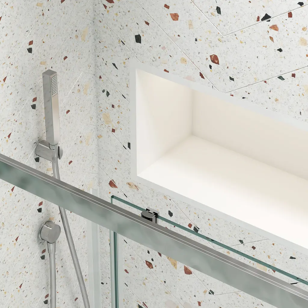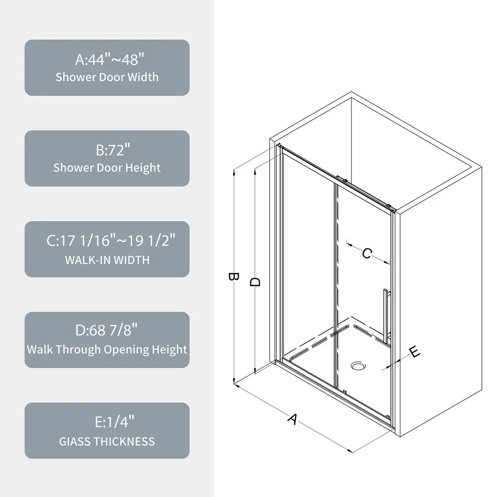 [Quality Materials] This shower door is supported by an aluminum frame for its high strength and corrosion resistance that can ensure that the structure remains strong once mounted and used for more years easily.[Quality Materials] Crafted with tempered glass the shower door is heavy-duty and durable enough to provide long-lasting use.[Single Sliding] The single sliding shower door is everything you want with your bathroom remodel. It has built-in adjustability to ensure that it is a perfect fit in your shower. You can be easily cleaned and maintained by using a squeegee after each use.[Framed] The framed shower door is made of high-quality outer frame material, which can make your bathroom safer and thicker, strong and rust-free.[Black Finish] This black finish creates a contemporary look for the bathroom. The surface is processed for long-time service and is easy to maintain.