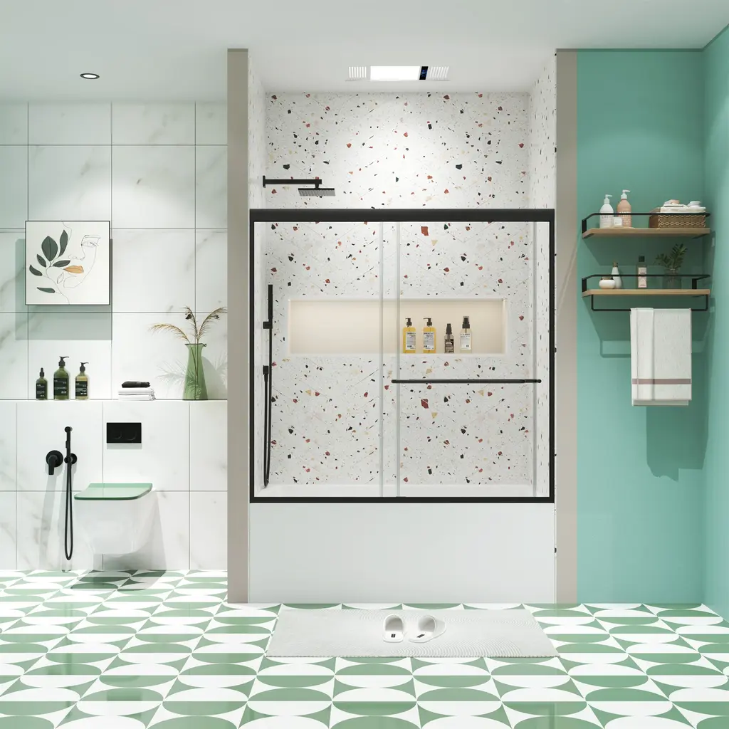 [Quality Materials] This shower door is supported by an aluminum frame for its high strength and corrosion resistance that can ensure that the structure remains strong once mounted and used for more years easily.[Quality Materials] Crafted with tempered glass the shower door is heavy-duty and durable enough to provide long-lasting use.[Single Sliding] The single sliding shower door is everything you want with your bathroom remodel. It has built-in adjustability to ensure that it is a perfect fit in your shower. You can be easily cleaned and maintained by using a squeegee after each use.[Framed] The framed shower door is made of high-quality outer frame material, which can make your bathroom safer and thicker, strong and rust-free.[Black Finish] This black finish creates a contemporary look for the bathroom. The surface is processed for long-time service and is easy to maintain.