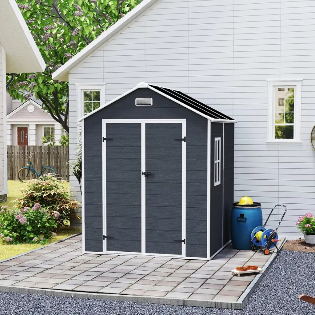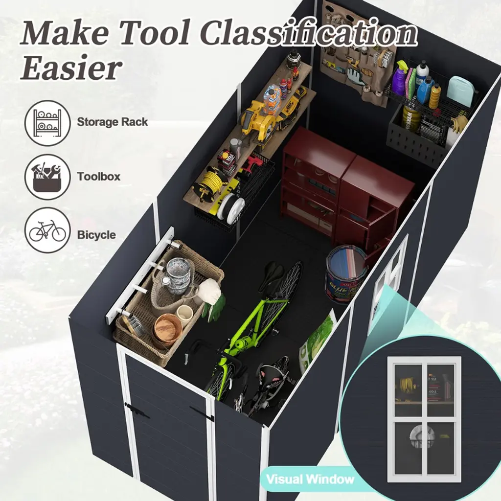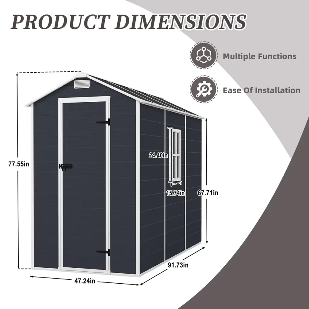 4*8ft Resin Storage Shed, High Quality Pp Material, Strong Structure, Waterproof, Rust And Uv Proof, Large Storage Space,hd Window Lighting Dark Gray