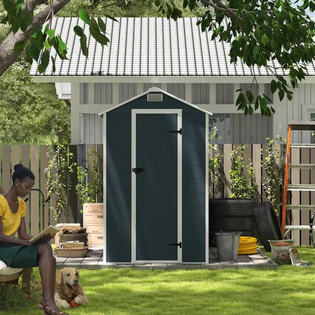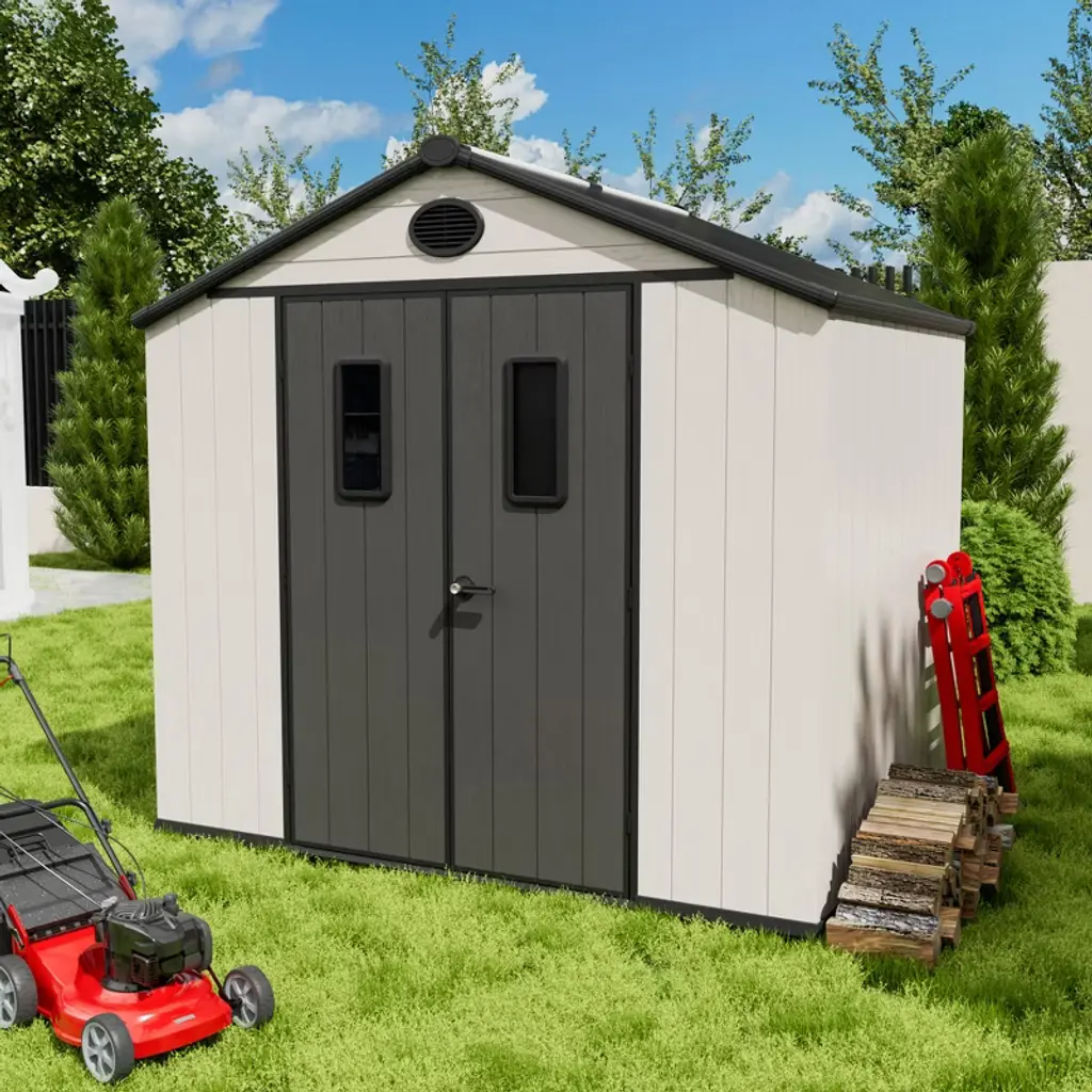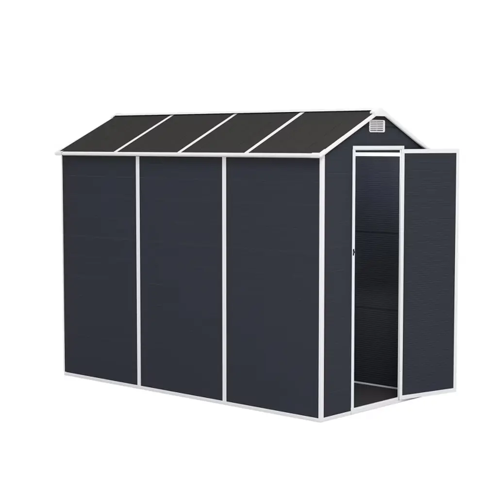 4*8ft Resin Storage Shed, High Quality Pp Material, Strong Structure, Waterproof, Rust And Uv Proof, Large Storage Space,hd Window Lighting Dark Gray