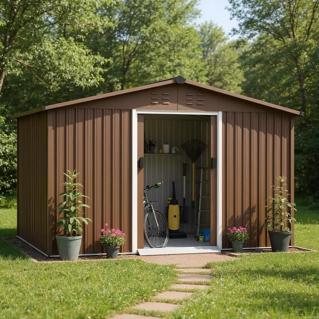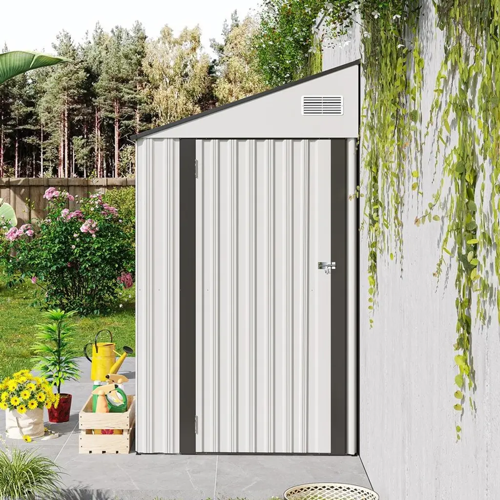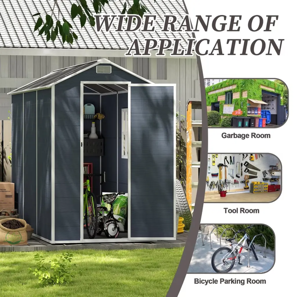 ¡¾Spacious Storage Tool Shed¡¿This 6 x 5ft outdoor shed provides impressive storage room for tools, equipment, and materials, which is perfect for backyard, garden, patio, utility weatherproof tool room. Keep your house and backyard tidy.¡¾Sturdy Outdoor Storage Room¡¿The outdoor tool shed is made with galvanized steel for strong CORROSION-RESISTANCE, UV-RESISTANT and MOISTURE-PROOF. It is suitable for all weather conditions and can be used all year round.¡¾Metal Foundation Frame¡¿The storage shed is equipped with metal Foundation frame, you only need to find some pieces of wood and put them on the foundation to keep your items away from the ground. Even in rainy days, your items will not get wet and rust.¡¾Ventilation & Waterproof Design¡¿This outdoor storage shed with inclined slope roof, add extra storage and prevents rain water from gathering and preventing from rust. And the 2 transparent panels allow sunlight to illuminate interior.¡¾Easy to assemble¡¿All panels and frames are pre-cut and perforated, you just need to assemble them together according to the numbered panels and accessories.