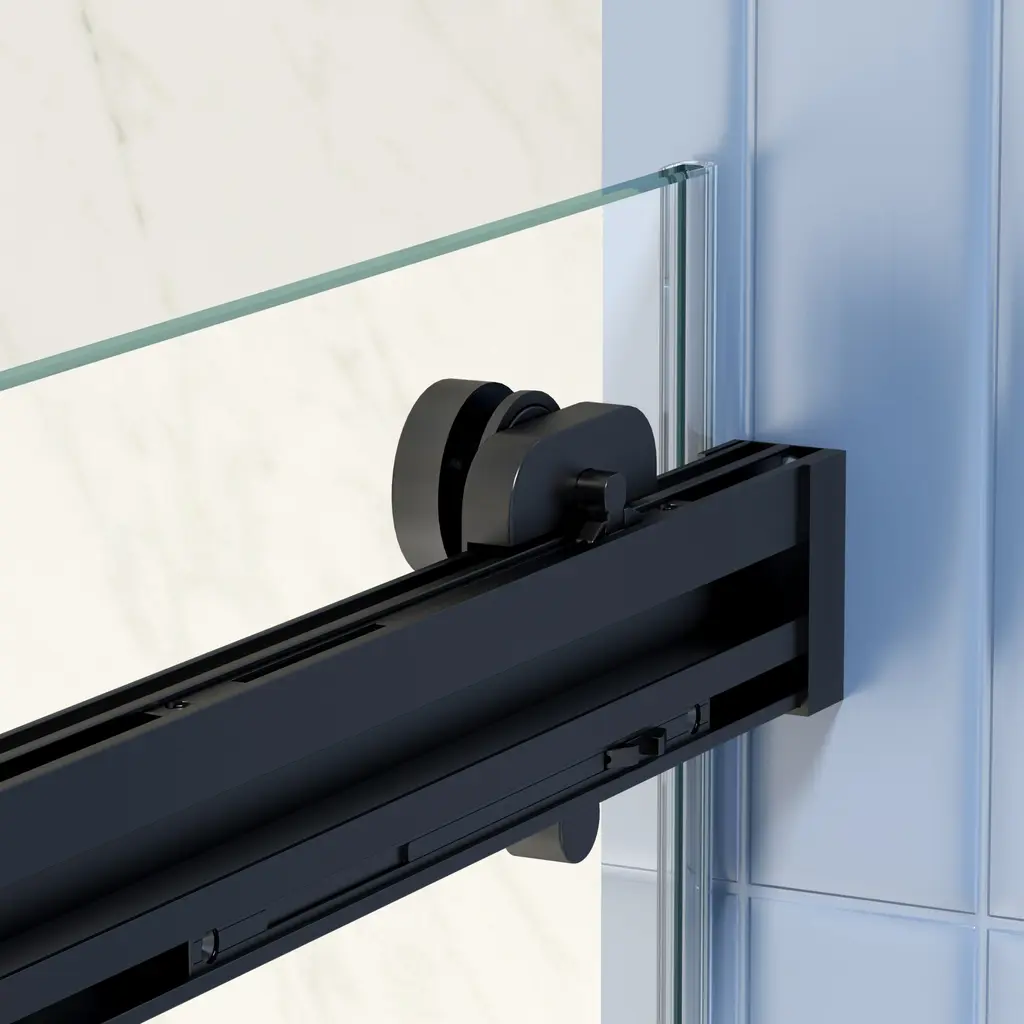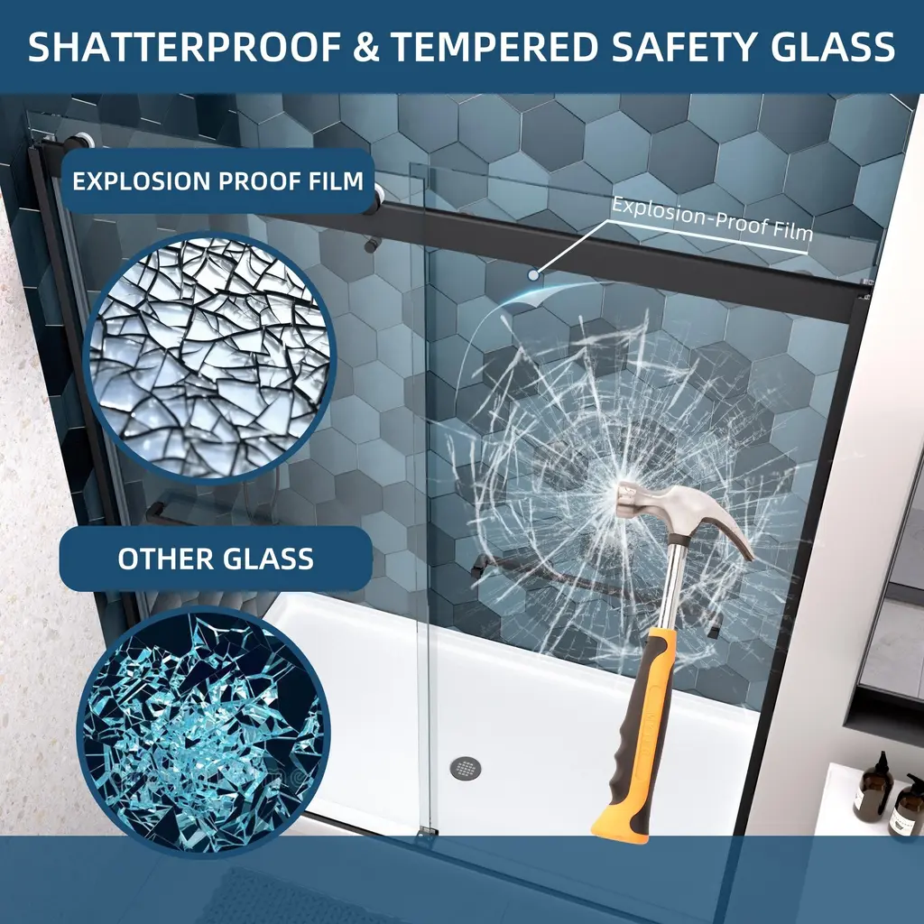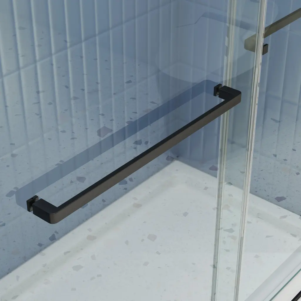 Upgrade your bathroom with the stunning Frameless Sliding Glass Shower Door. This shower door is designed to provide a seamless and elegant look while offering exceptional functionality and durability. Premium Quality: Made from 8mm thick tempered transparent glass, this frameless sliding glass shower door offers durability and a sleek aesthetic. Stainless Steel Hardware: The aluminum top rail is equipped with high-quality stainless steel hardware, ensuring long-lasting performance and resistance to rust and corrosion. Enhanced Safety: The tempered transparent glass is treated with a nano easy-clean coating and a protective film to enhance safety and prevent shattering. Easy to Clean: The nano easy-clean coating on the tempered glass provides effortless cleaning, saving you time and effort. Generous Dimensions: With a width of 48 inches and a height of 74 inches, this frameless sliding glass shower door offers ample space for a comfortable shower experience.