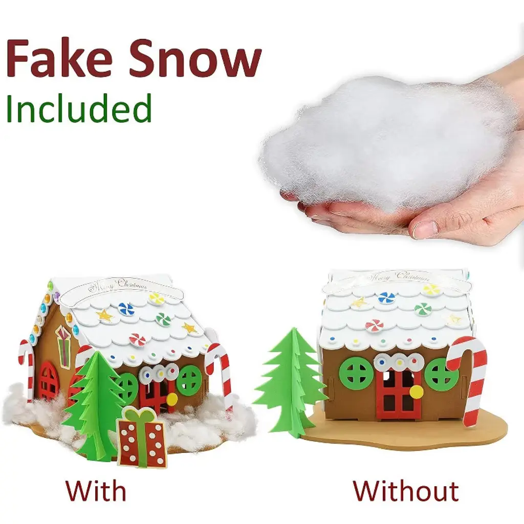 Looking for a Gingerbread Experience Without the Mess? Introducing the ultimate gingerbread house kit that will make you say goodbye to sticky fingers and hello to endless fun! This isn't your ordinary ginger bread house christmas kit—it's packed with everything you need to build fun foam house magic this holiday season! From toddlers to teens, everyone can get involved in crafting their own foam gingerbread house without worrying about glue, sugar, or gingerbread crumbling before your eyes. Yep, it's that easy! Our delightful gingerbread house kit comes with self-adhesive foam panels that are a breeze to assemble—simply peel and stick. No glue? No problem! In no time, you’ll have your very own 3D gingerbread houses to show off. Plus, there are over 100 gingerbread house stickers and gingerbread house decorations included, letting you personalize your creation to the max. Did we mention the fake snow? Because nothing says festive like a snowy ginger bread christmas decor masterpiece! STICK, BUILD, AND HAVE A BLAST!: Imagine this: it’s snowing outside, holiday music is playing, and you’re inside building the most charming foam gingerbread house ever! Our easy-to-assemble kit means no stress, just smiles. Whether you're using it for classroom activities or family gatherings, this holiday house kit brings joy to all. No glue needed, just a little imagination and some gingerbread decorations. It’s the perfect christmas crafts for kids that adults will want to join in on too. MORE STICKERS, MORE FUN!: Let’s be real—stickers make everything better, and this gingerbread house kit bulk is no exception! With over 100 included, you can go all out and customize every inch of your house. Candy canes, gumdrops, and more—our gingerbread house stickers are easy to use and totally mess-free. So stick away, and watch your holiday masterpiece come to life! SIZED JUST RIGHT FOR HOLIDAY JOY!: With a perfect 5"x5" dimension, this gingerbread house is just the right size for any table, mantel, or display. It’s big enough to decorate with flair, yet small enough to not take up your entire living room. The house panels come together like a puzzle, so it’s super easy to build fun foam house creations. No mess, no fuss—just pure, festive fun. FAKE SNOW FOR THE REAL WIN!: What’s a holiday craft without a little snow? This kit includes fake snow to sprinkle on top of your gingerbread house decorations, making your holiday scene truly magical. It’s like bringing a winter wonderland into your home, without the cold! The ginger bread christmas decor that you create will be the talk of the town—who needs real gingerbread when you’ve got foam and snow? HOLIDAY FUN FOR ALL AGES!: Whether you’re crafting with your kiddos or hosting a DIY holiday party, this ginger bread house christmas kit is perfect for all ages. From toddlers to teens to adults, everyone will have a blast building and decorating their own foam gingerbread creation. No need to worry about little hands getting messy—our self-adhesive foam makes it simple for even the tiniest of crafters. It’s the best christmas crafts for kids that you can enjoy together. CALL SANTA, YOU’RE READY FOR THE HOLIDAYS!: In the end, your foam gingerbread houses will be so adorable, even Santa will want to visit! This holiday house kit is packed with everything you need to spread cheer, from self-adhesive panels to fake snow and plenty of gingerbread house decorations. Gather your family, friends, or class, and get ready to experience the magic of holiday crafting like never before. Don’t miss out on the fun—grab your gingerbread house kit today and start creating the most festive ginger bread christmas decor around! Whether you're a seasoned crafter or a first-timer, this kit makes it easy to get into the holiday spirit. Perfect for gifting, decorating, or just a fun family activity, it's time to build fun foam house masterpieces that everyone will love.